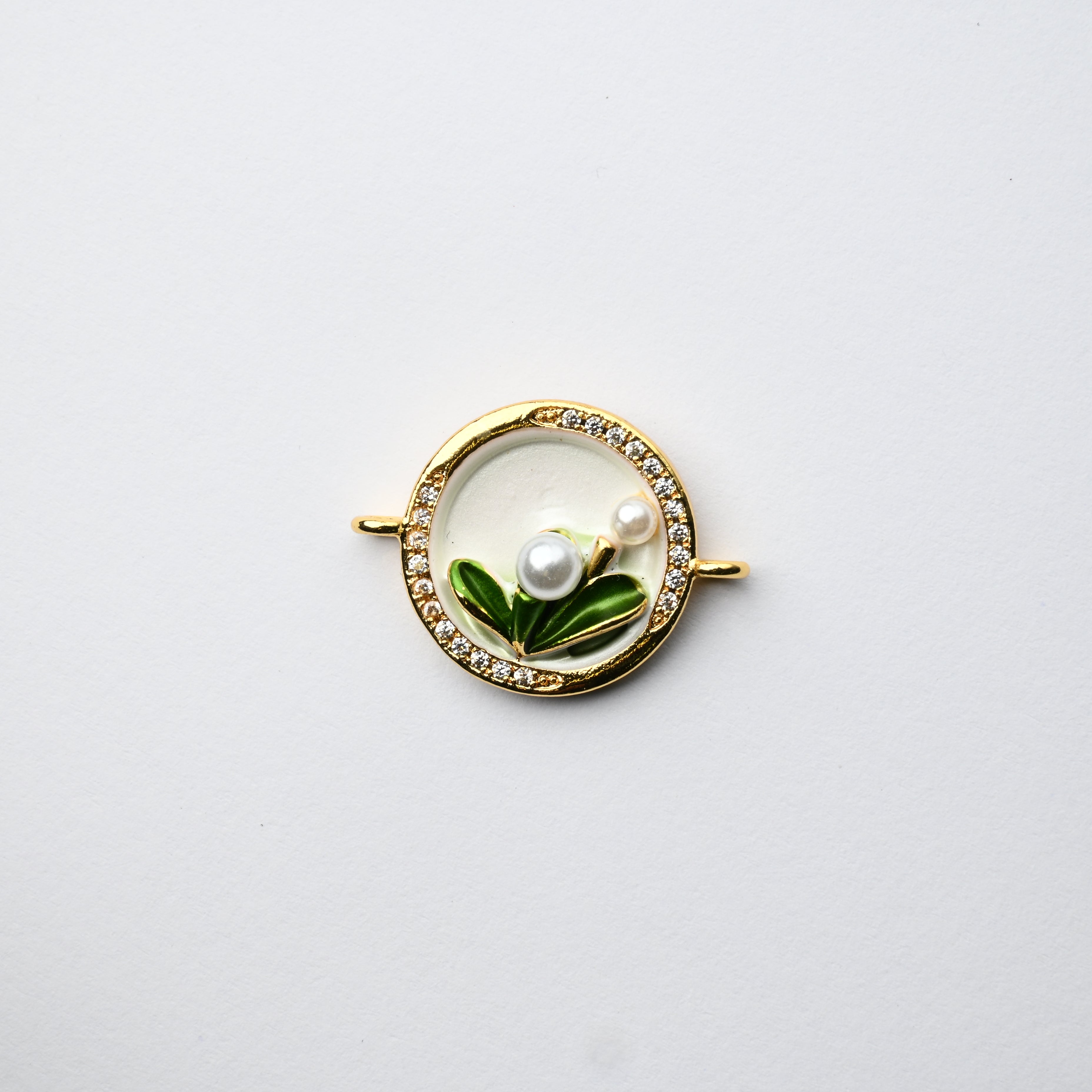 Connettore "Mughetto Perla" con Zirconi e Doppio Anellino Tondo 15mm - Artigianale