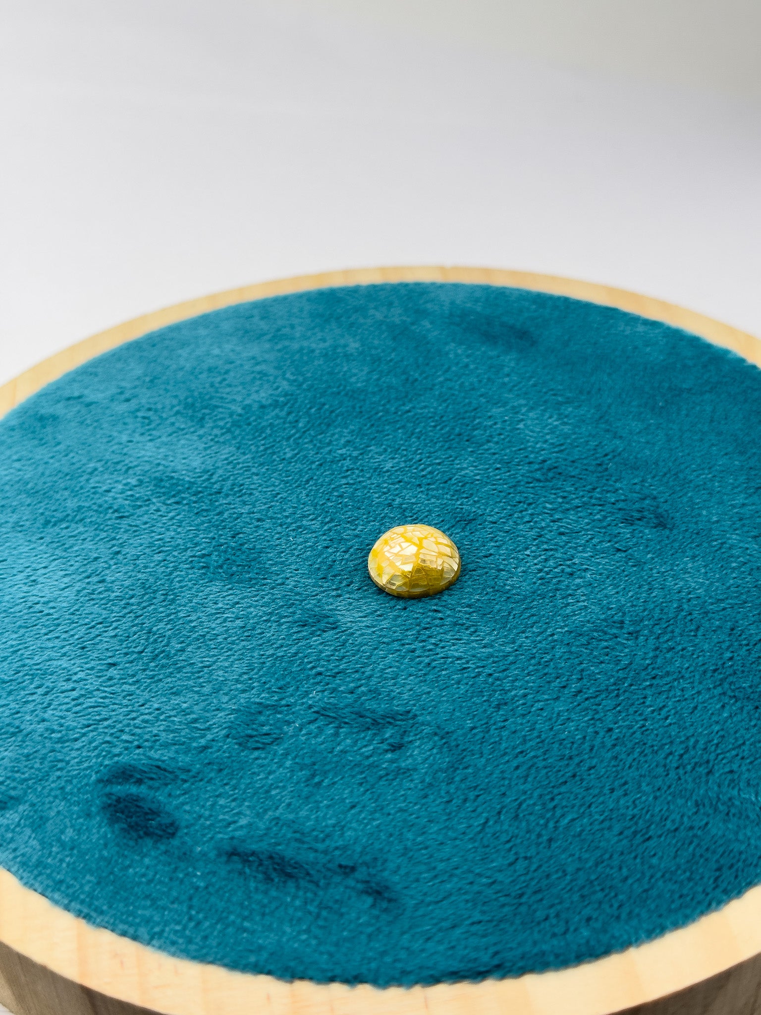 Un pezzo unico della nostra Collezione Artigianale “Riflessi di Miele”. Questo componente cattura la luce in modo straordinario, rivelando calde tonalità giallo miele/dorato e delicati riflessi perlescenti.