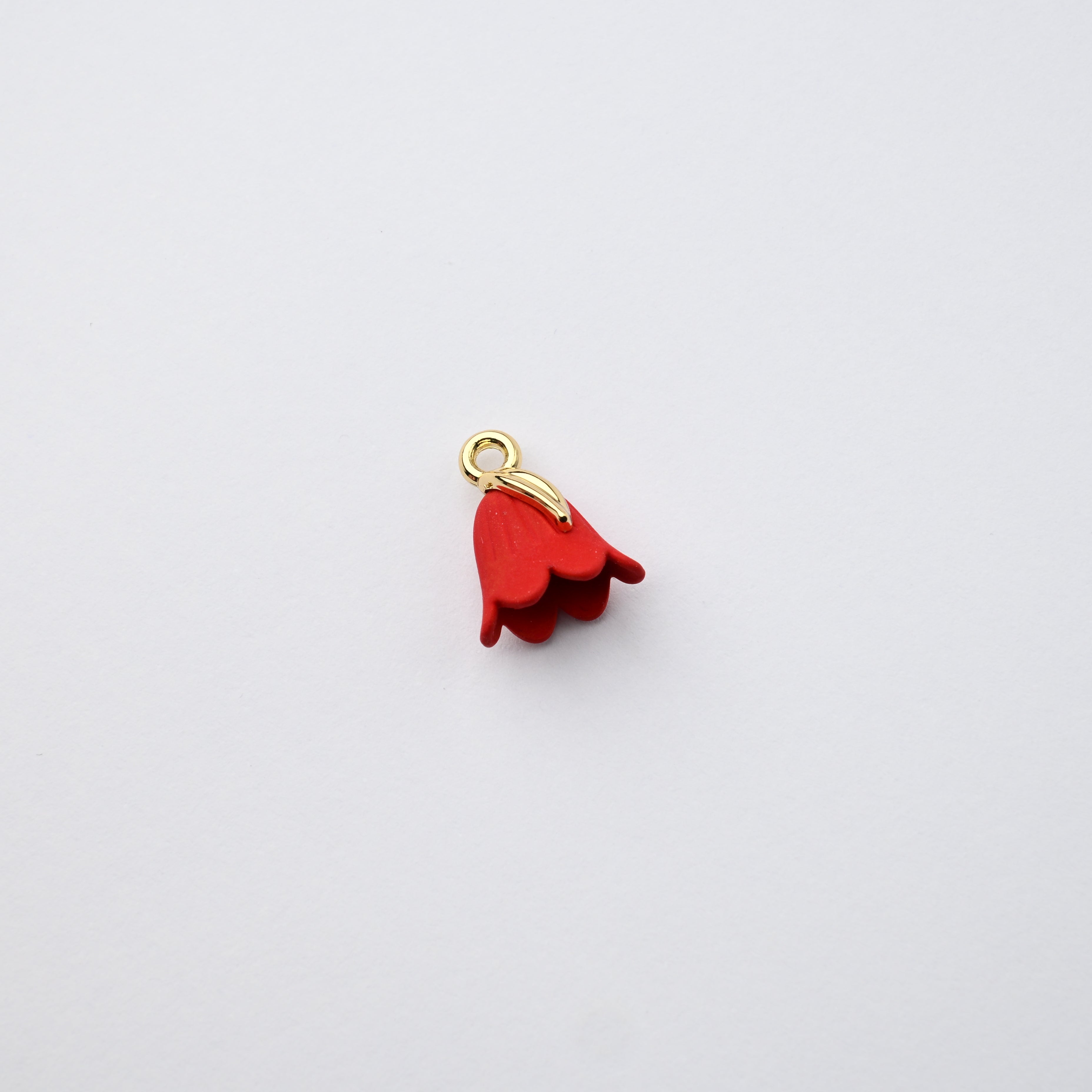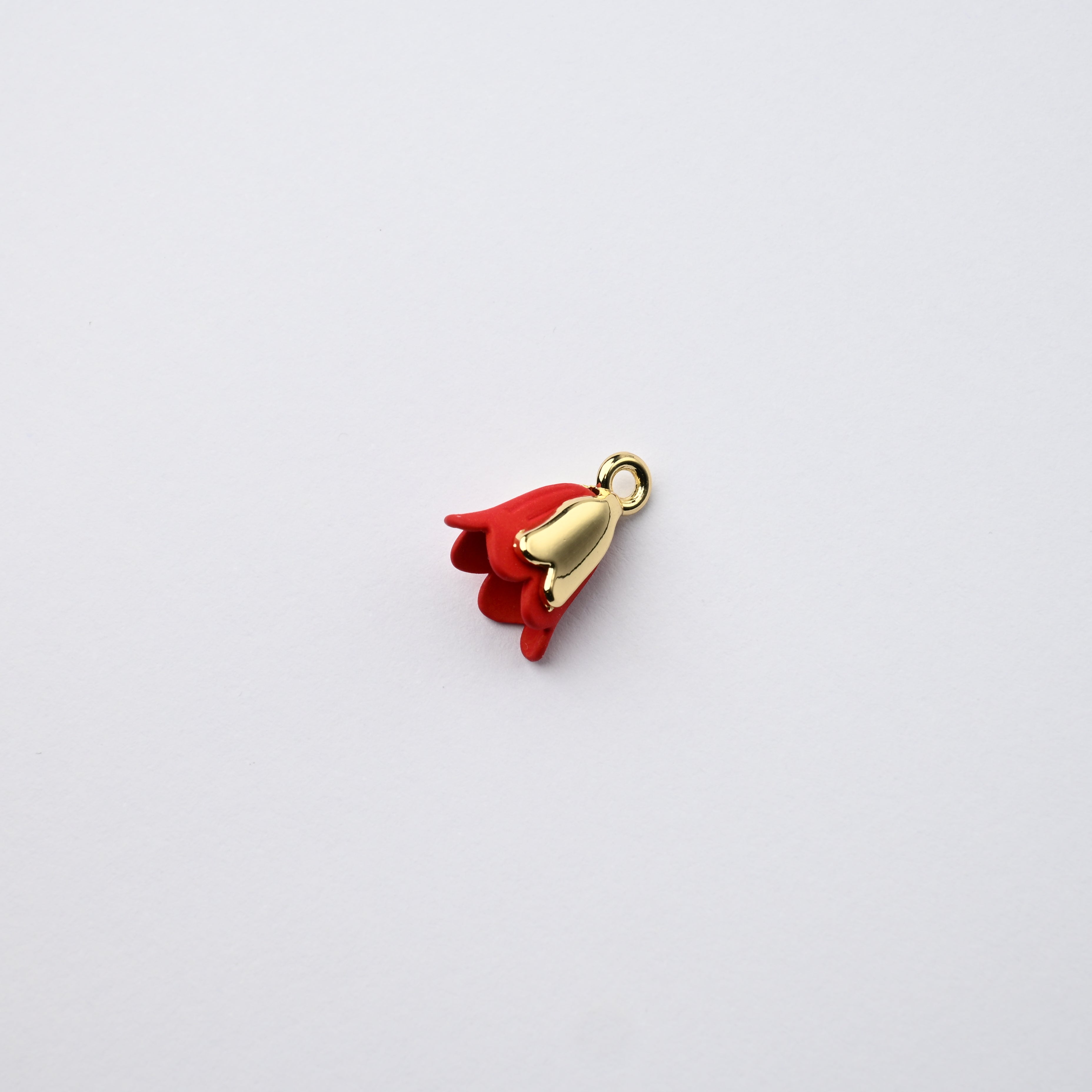 Ciondolo Petite in Ottone Fiore 10x7mm Rosso e Oro