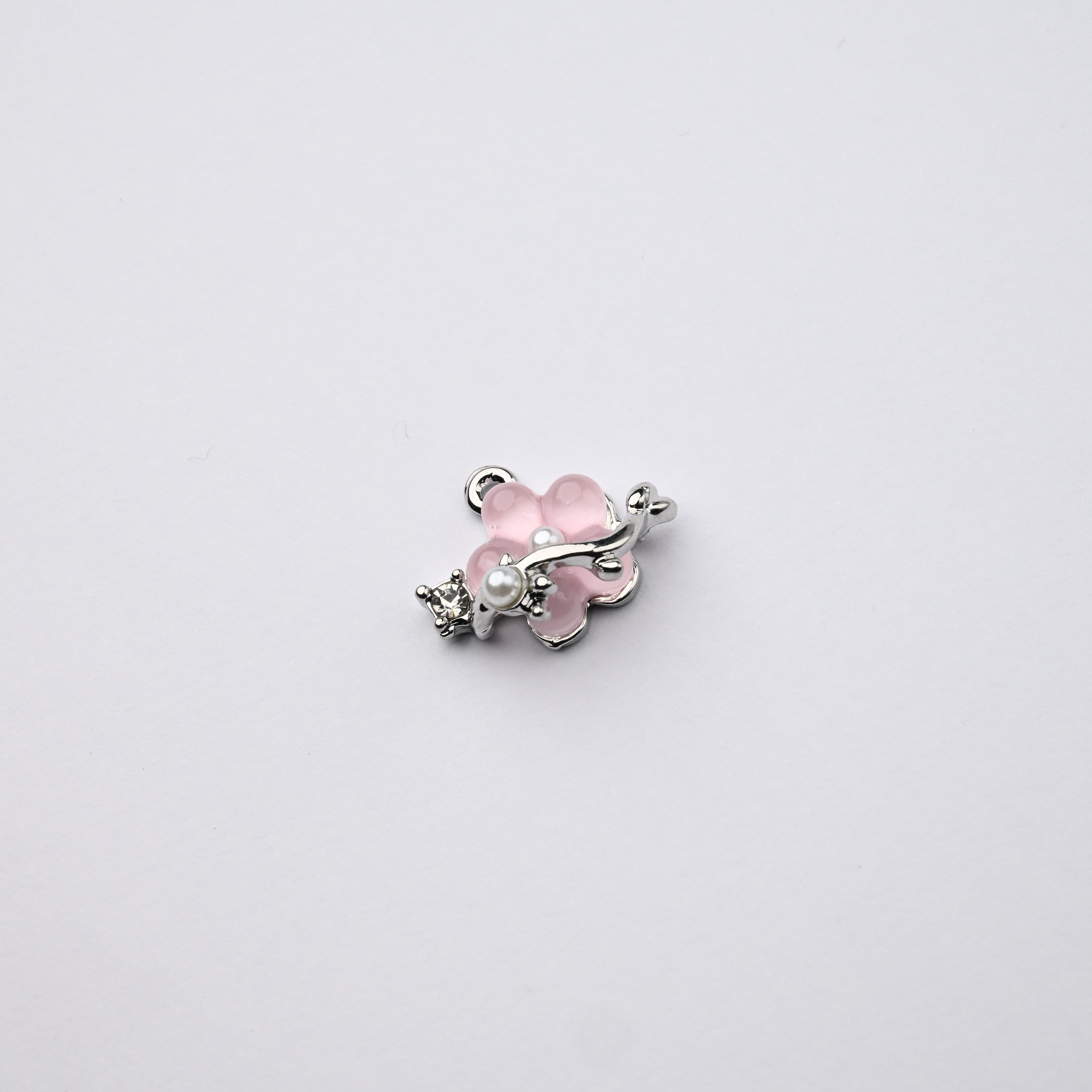 Ciondolo Petite in Ottone Fiore 17x10mm Rosa e Argento