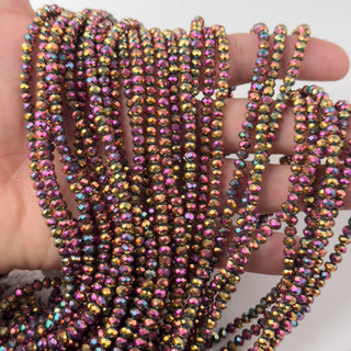 Cristalli Rondella Malva e Oro Metalizzato 4mm - Filo da 40 cm | Sarobidy