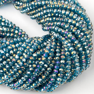 Cristalli Rondella Blu Pavone Trasparente Perlato 4mm - Filo da 40 cm | Sarobidy