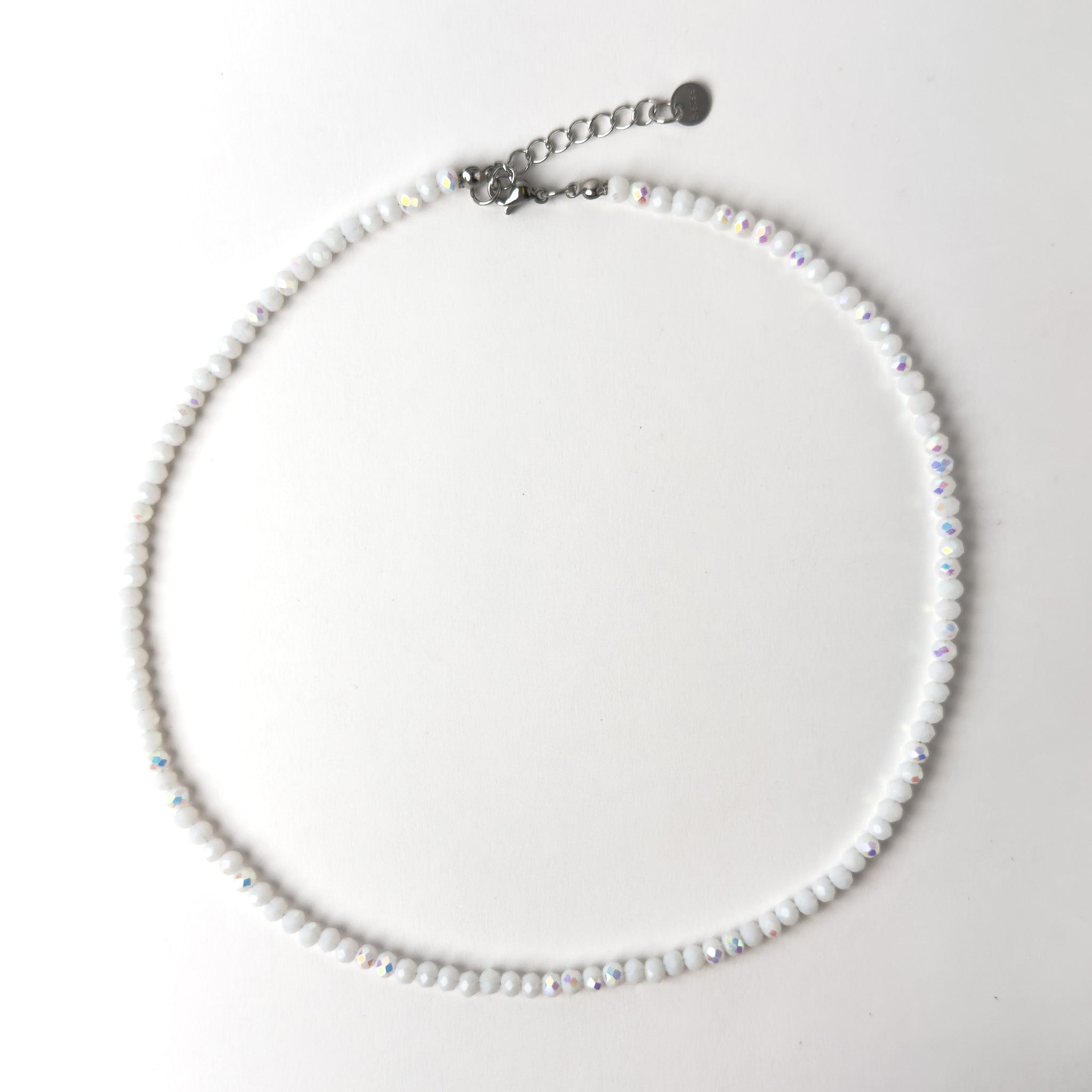 Collana Girocollo di Cristalli Bianco Pieno Boreale da 4mm con Estensione 5 cm