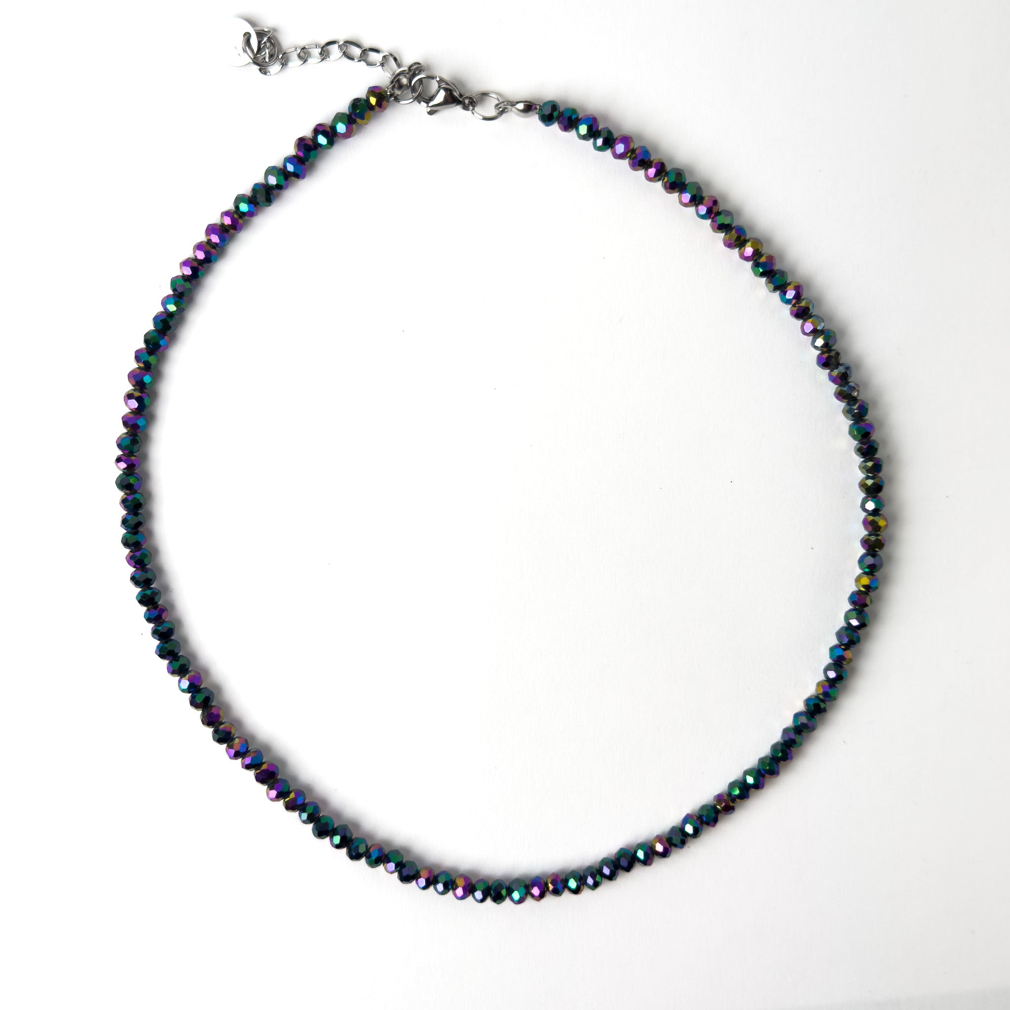 Collana Girocollo di Cristalli Viola Verde Metalizzato da 4mm con Estensione 5 cm