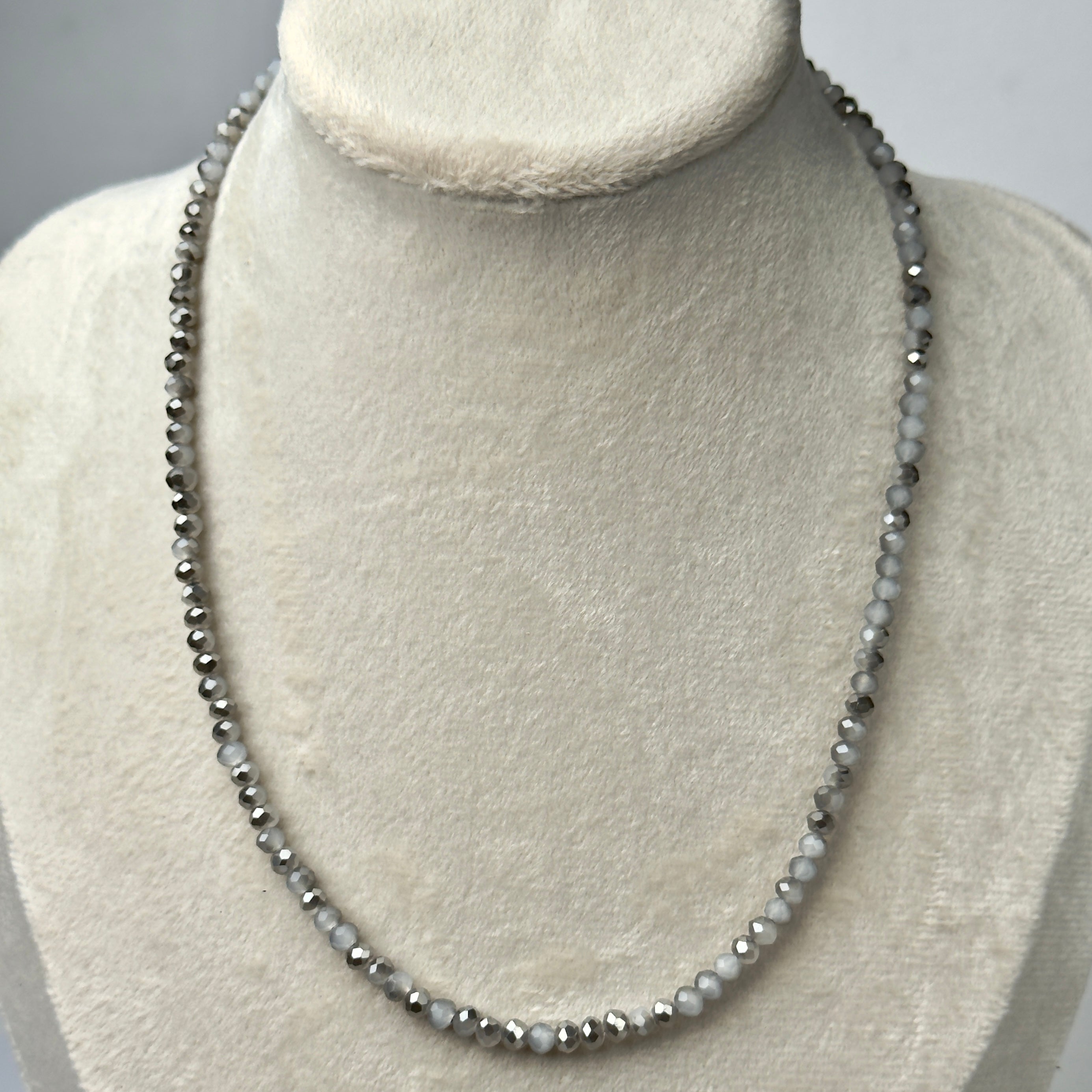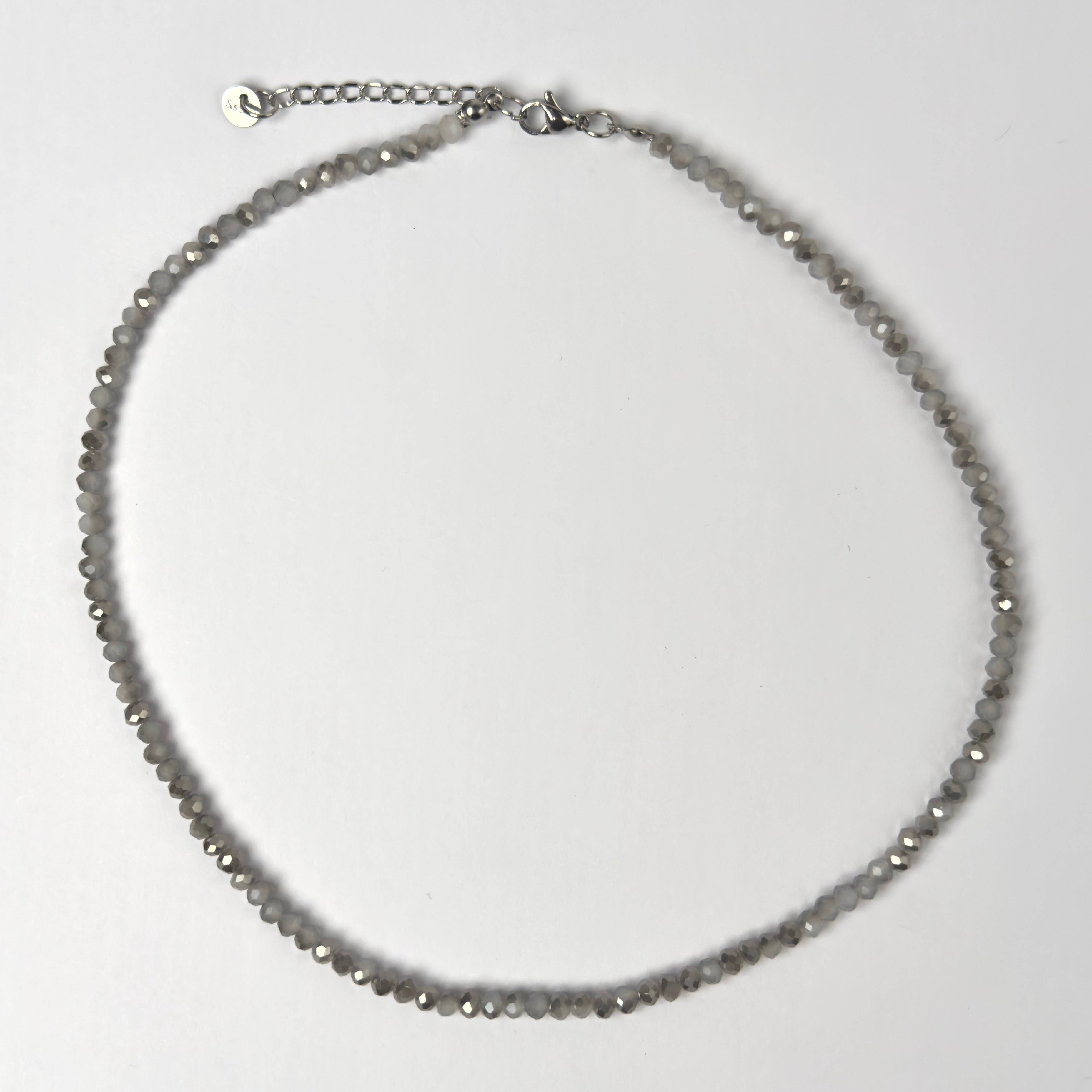 Collana Girocollo in Cristalli Grigio e Argento da 4mm con Estensione 5 cm