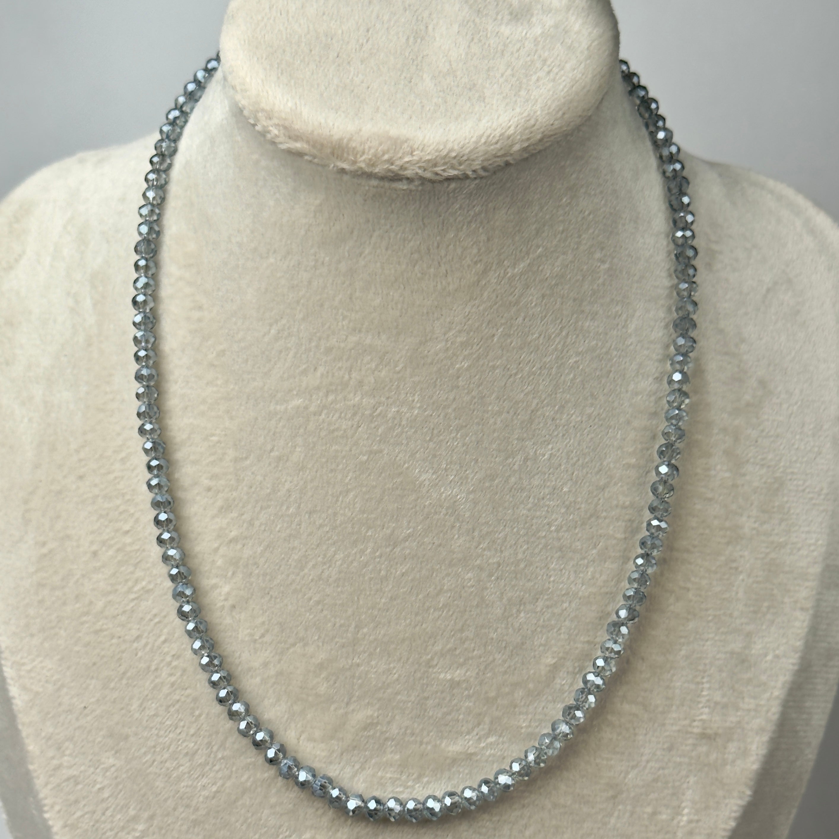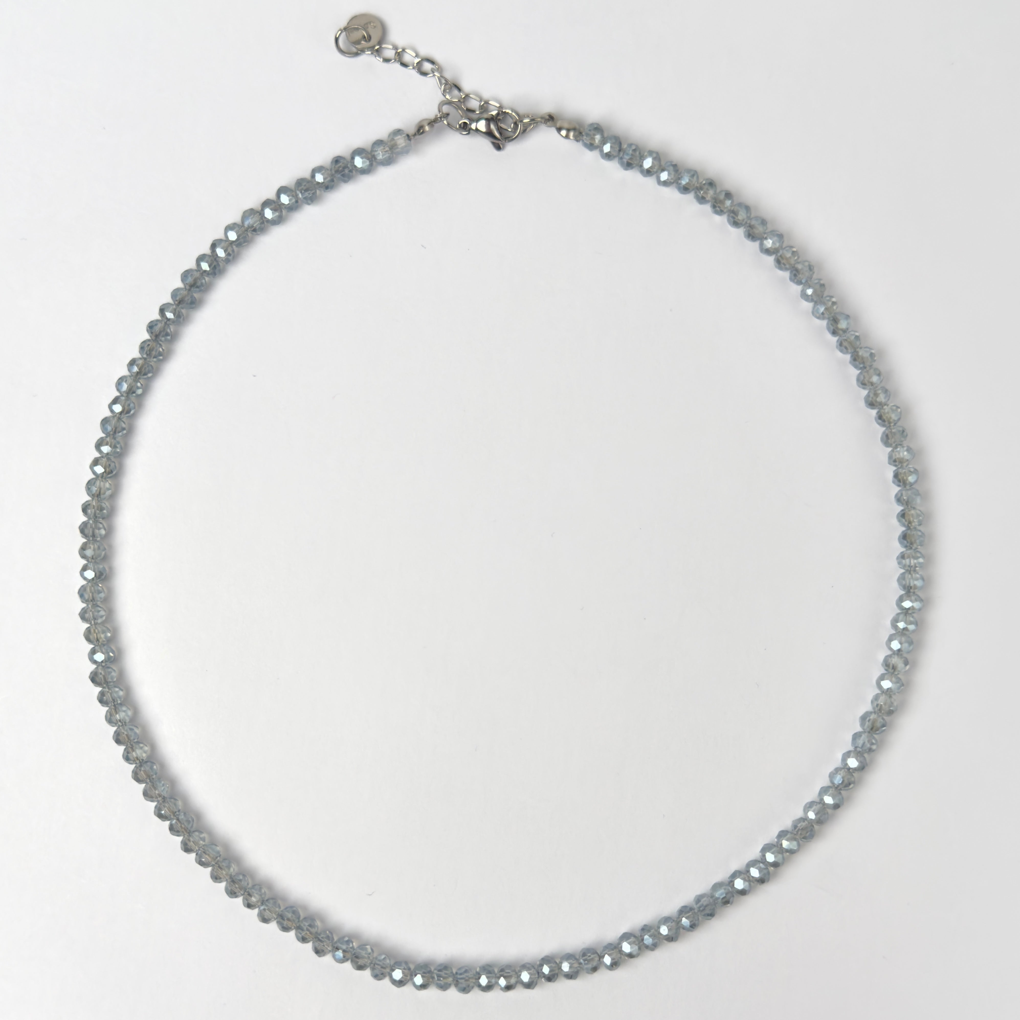 Collana Girocollo in Cristalli Grigio Trasparente da 4mm con Estensione 5 cm