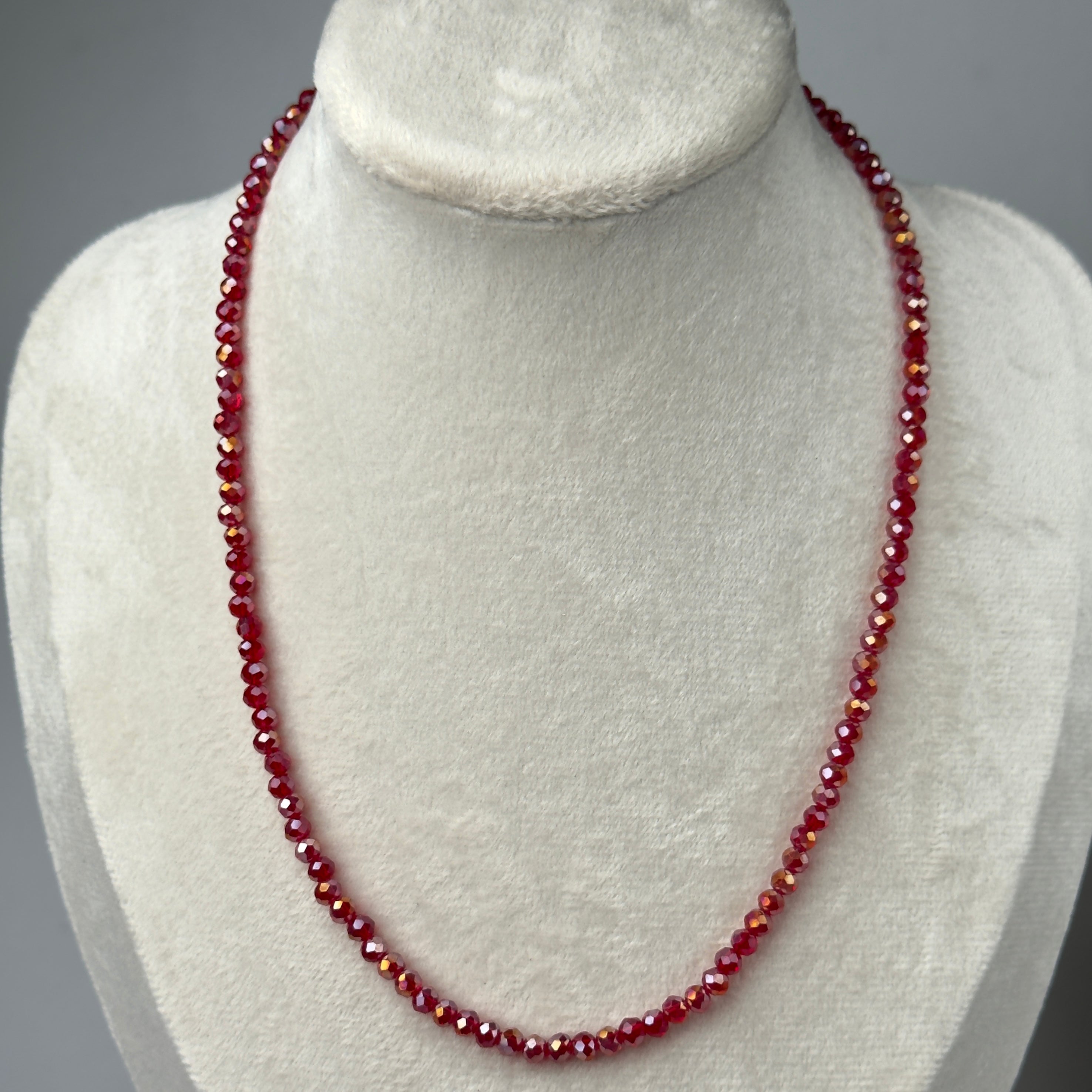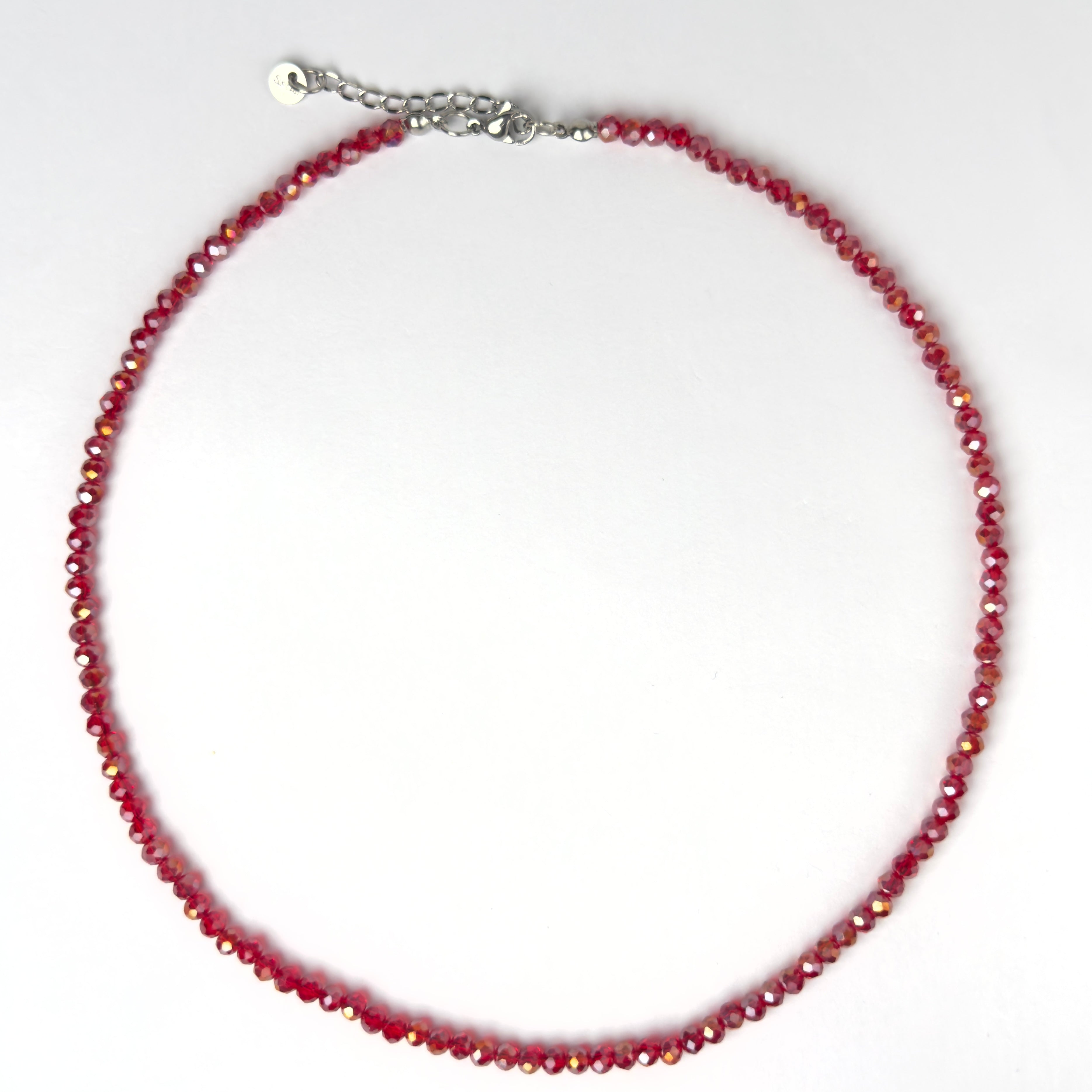 Collana Girocollo in Cristalli Rosso Boreale da 4mm con Estensione 5 cm