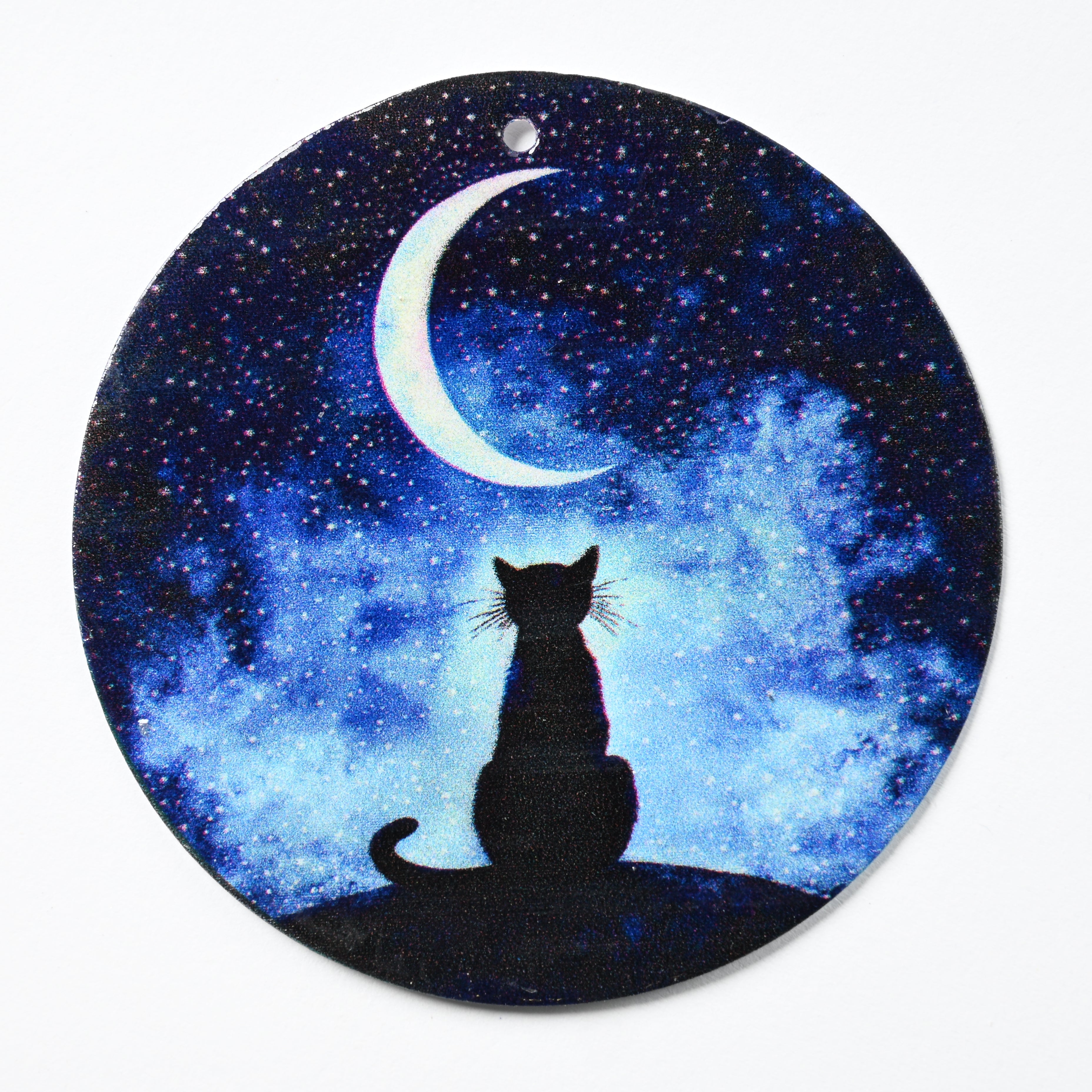 Pendente in Madreperla Gatto Mezzaluna Disco 60mm