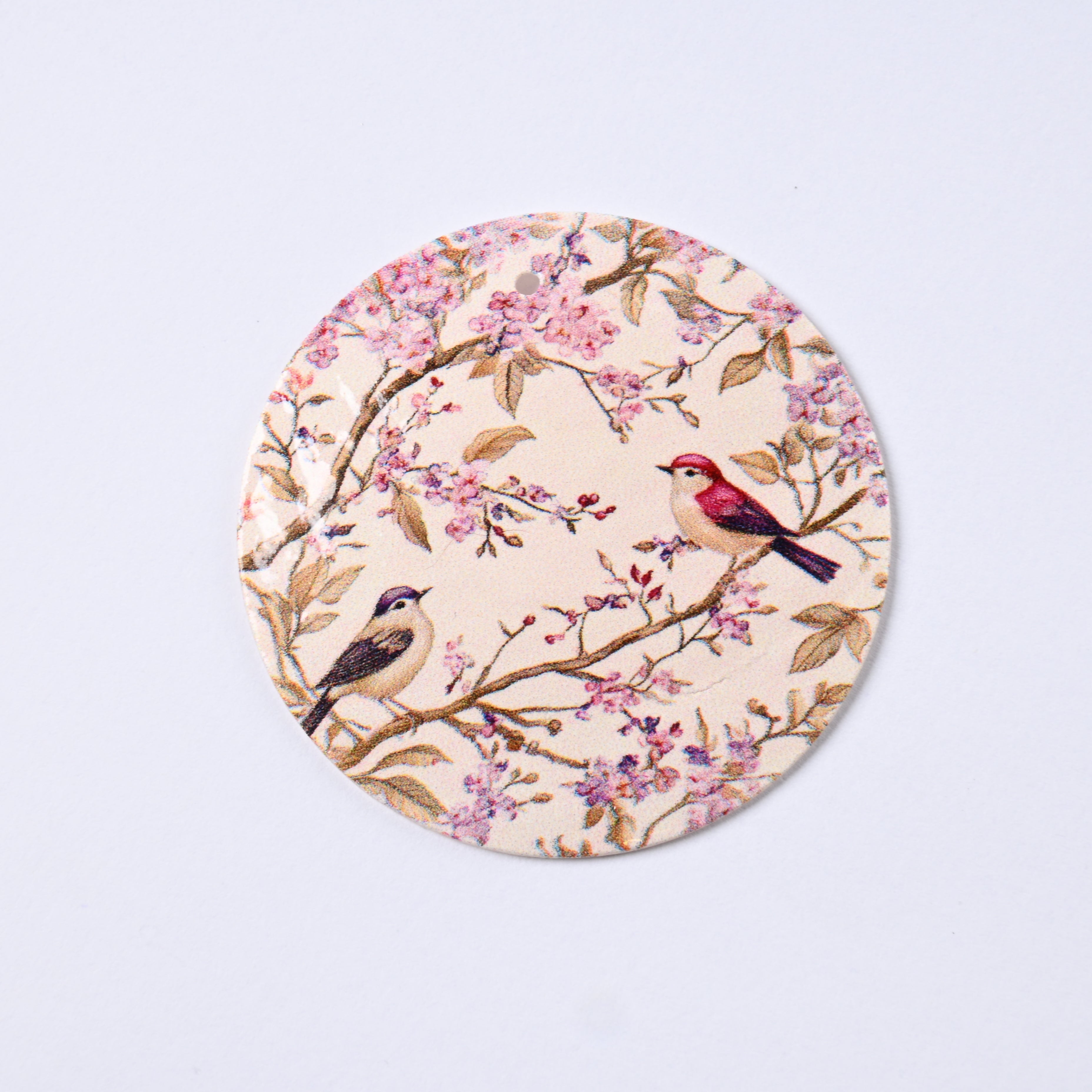 Pendente in Madreperla Uccellini su Albero Disco 40mm