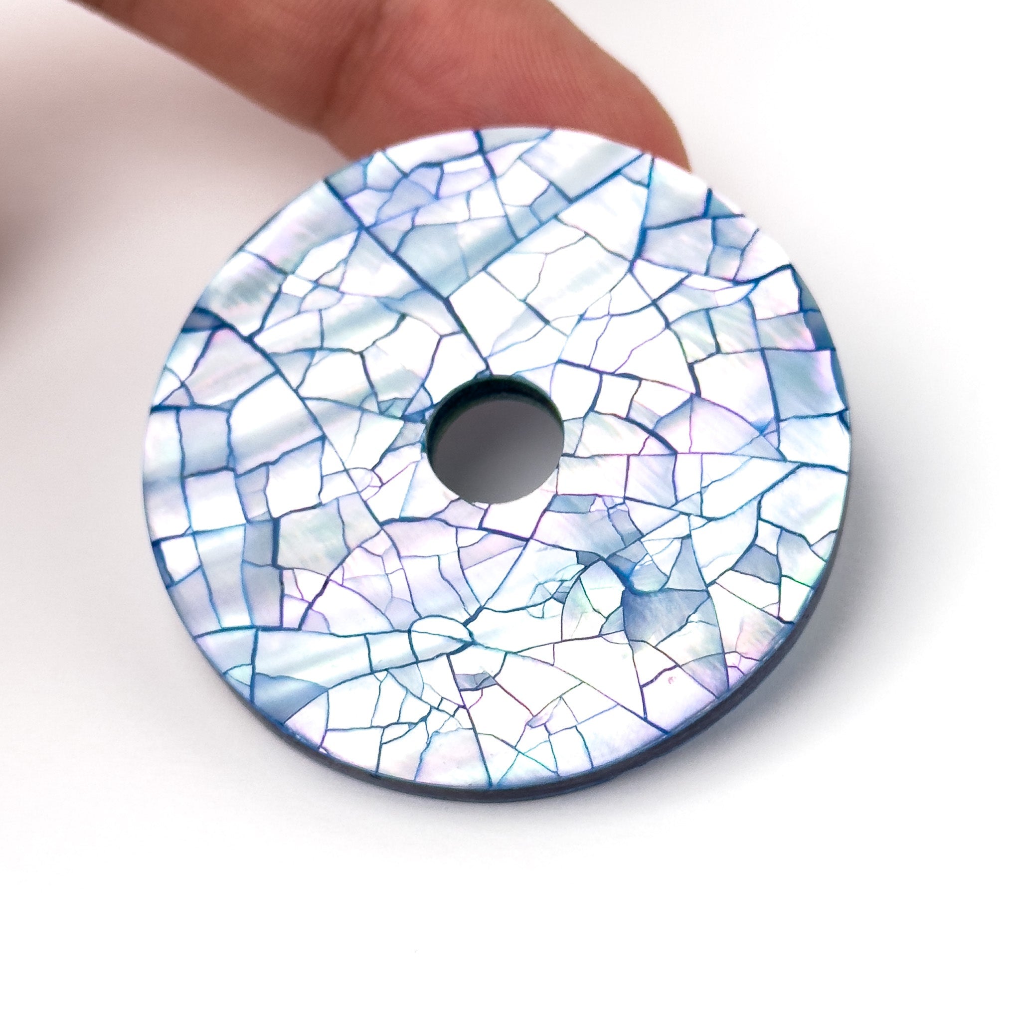 Un pezzo unico della nostra Collezione Artigianale "Luce d'Avorio". Questo componente unisce la lucentezza naturale della madreperla alla profondità della resina, in una delicata armonia di tonalità avorio.