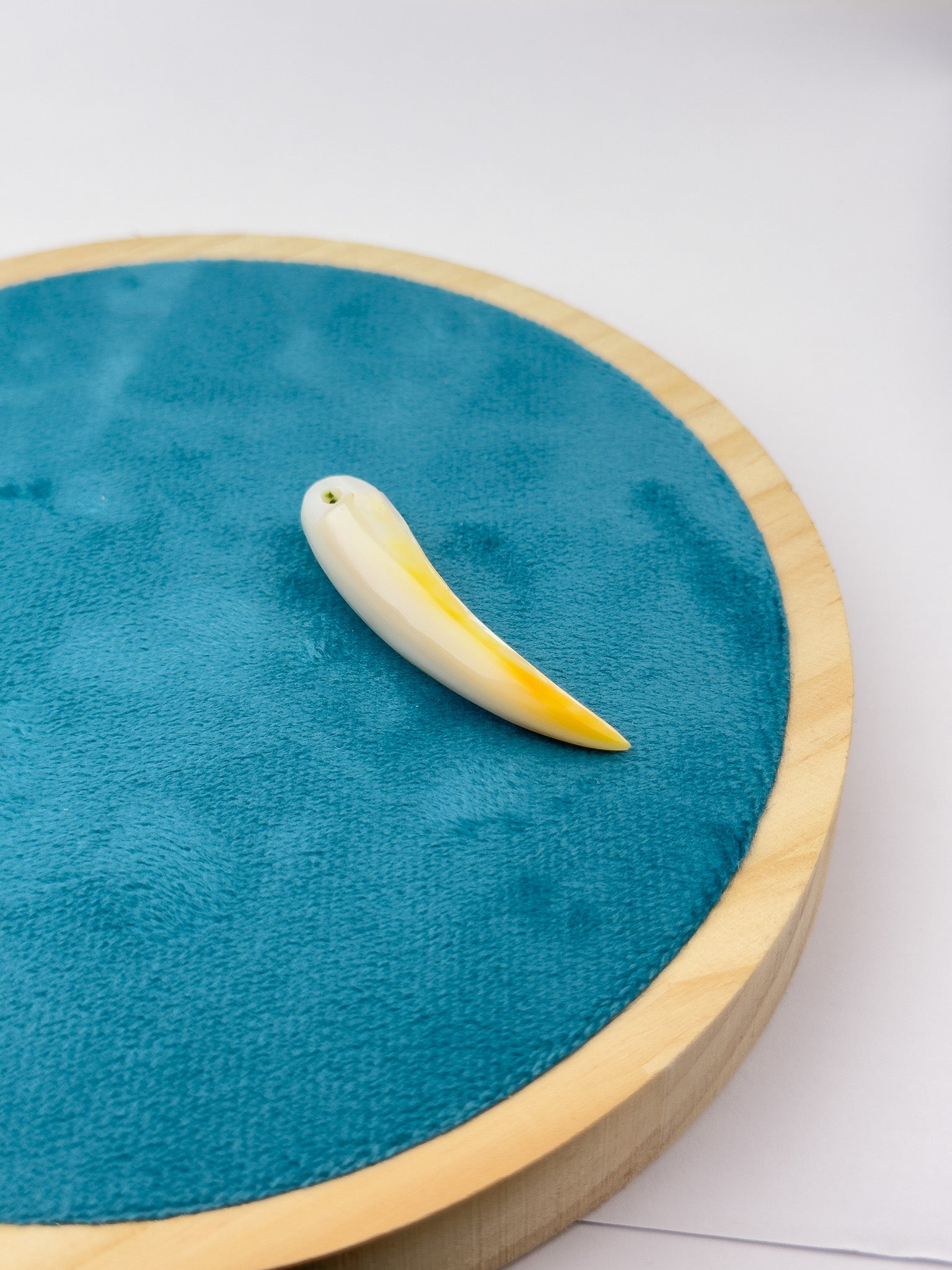 Un pezzo unico della nostra Collezione Artigianale “Riflessi di Miele”. Questo componente cattura la luce in modo straordinario, rivelando calde tonalità giallo miele/dorato e delicati riflessi perlescenti.