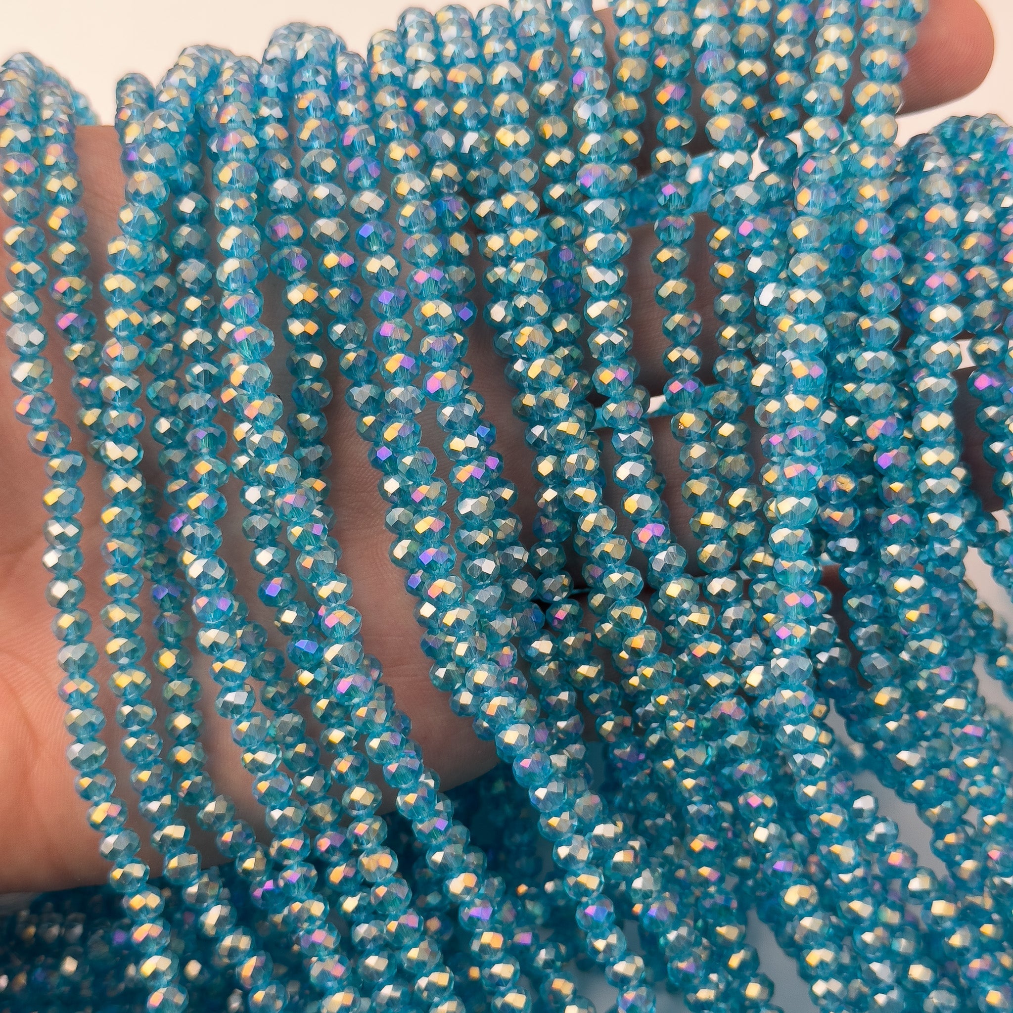 Cristalli Rondella Acquamarina Trasparente Aurora Boreale 4mm - Filo da 40 cm | Sarobidy