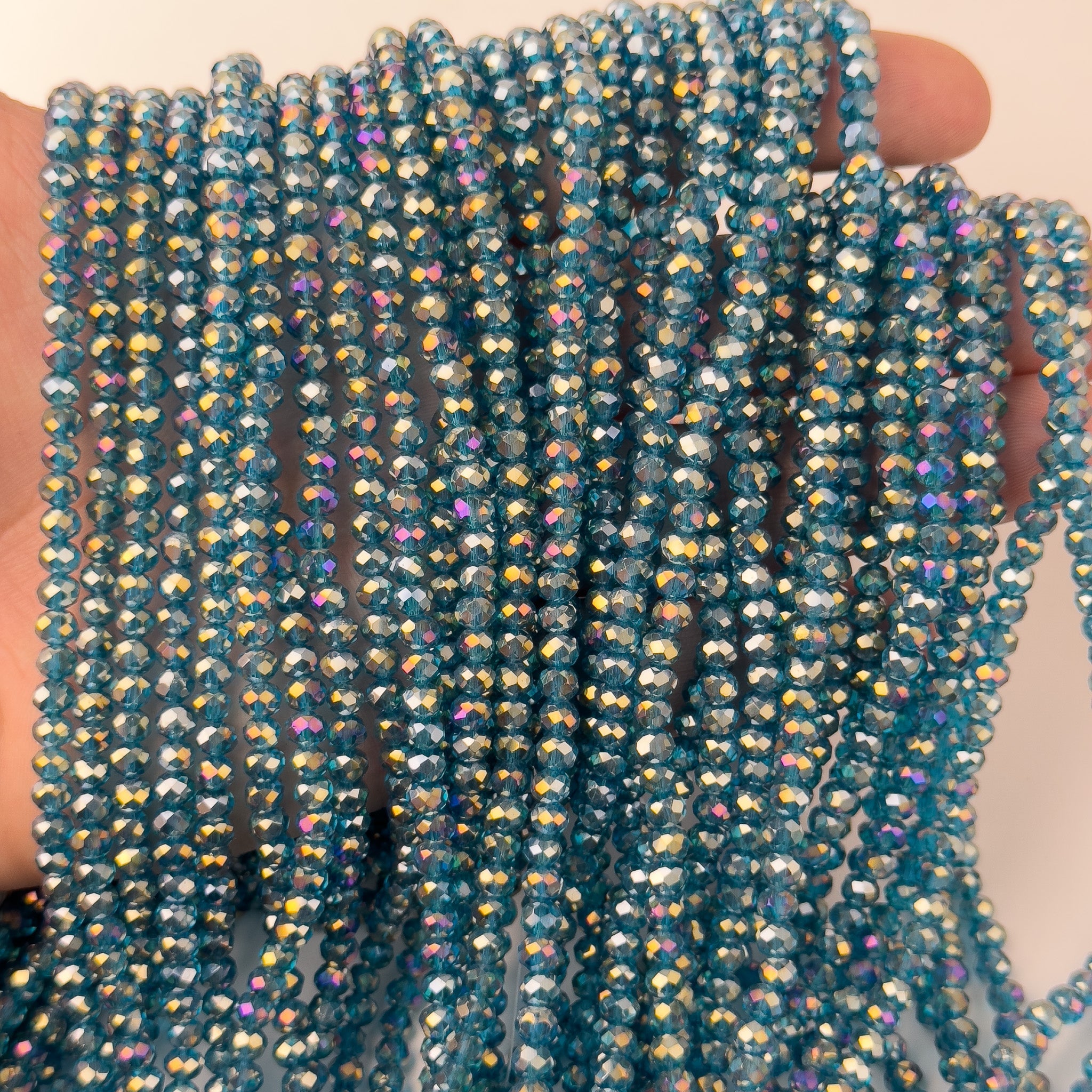 Cristalli Rondella Blu Petrolio Trasparente Aurora Boreale 4mm - Filo da 40 cm | Sarobidy