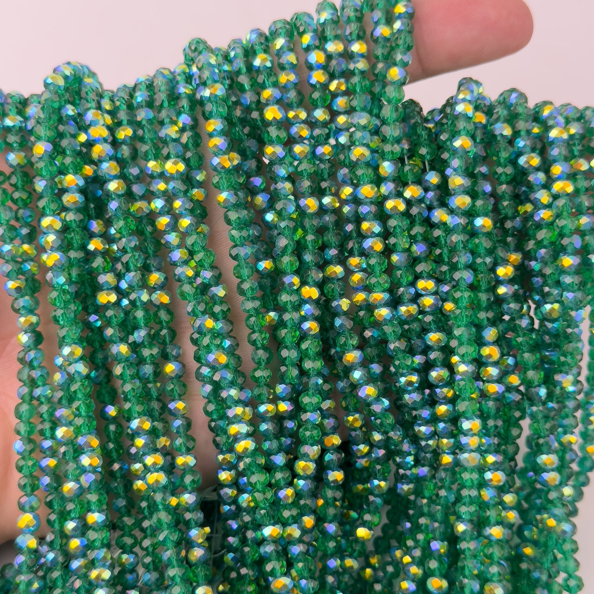 Cristalli Rondella Verde Trasparente Aurora Boreale Doppia 4mm - Filo da 40 cm | Sarobidy