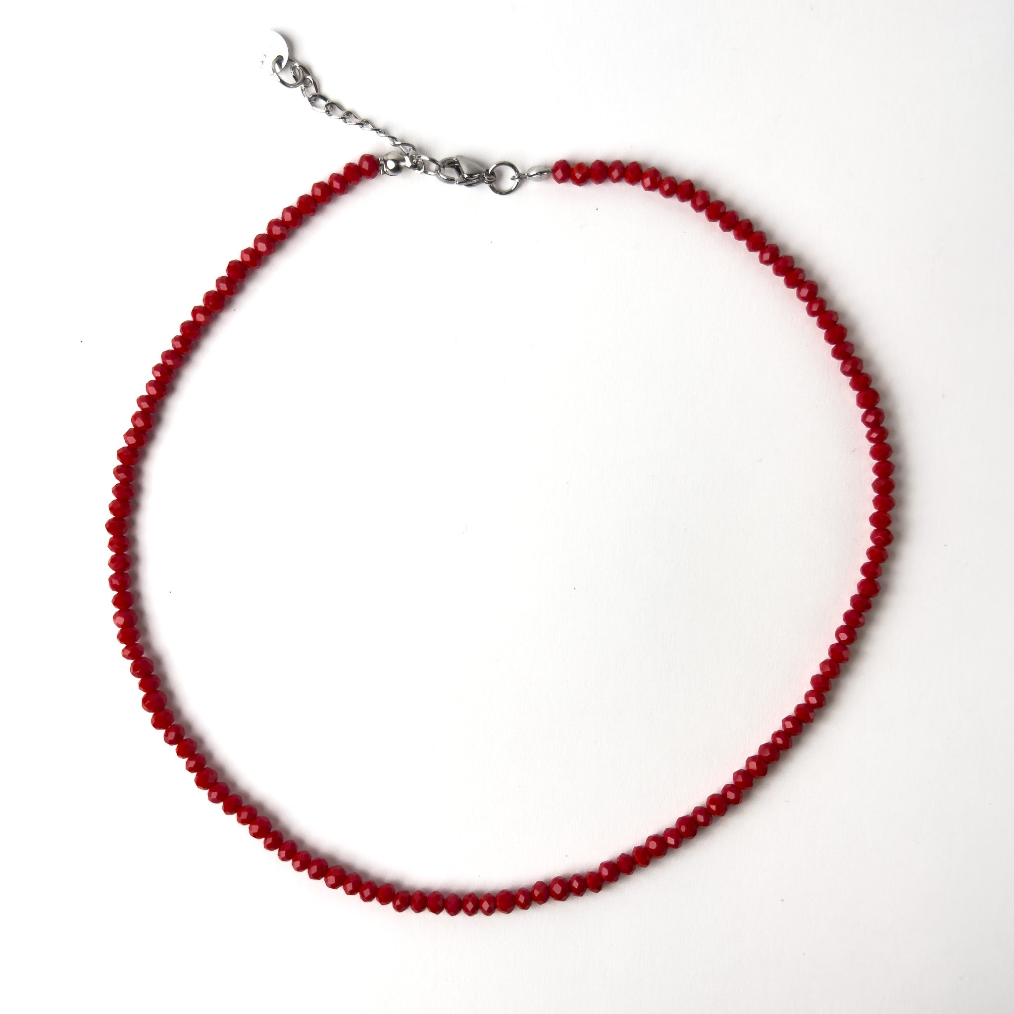 Collana Girocollo di Cristalli Rosso da 4mm con Estensione 5 cm