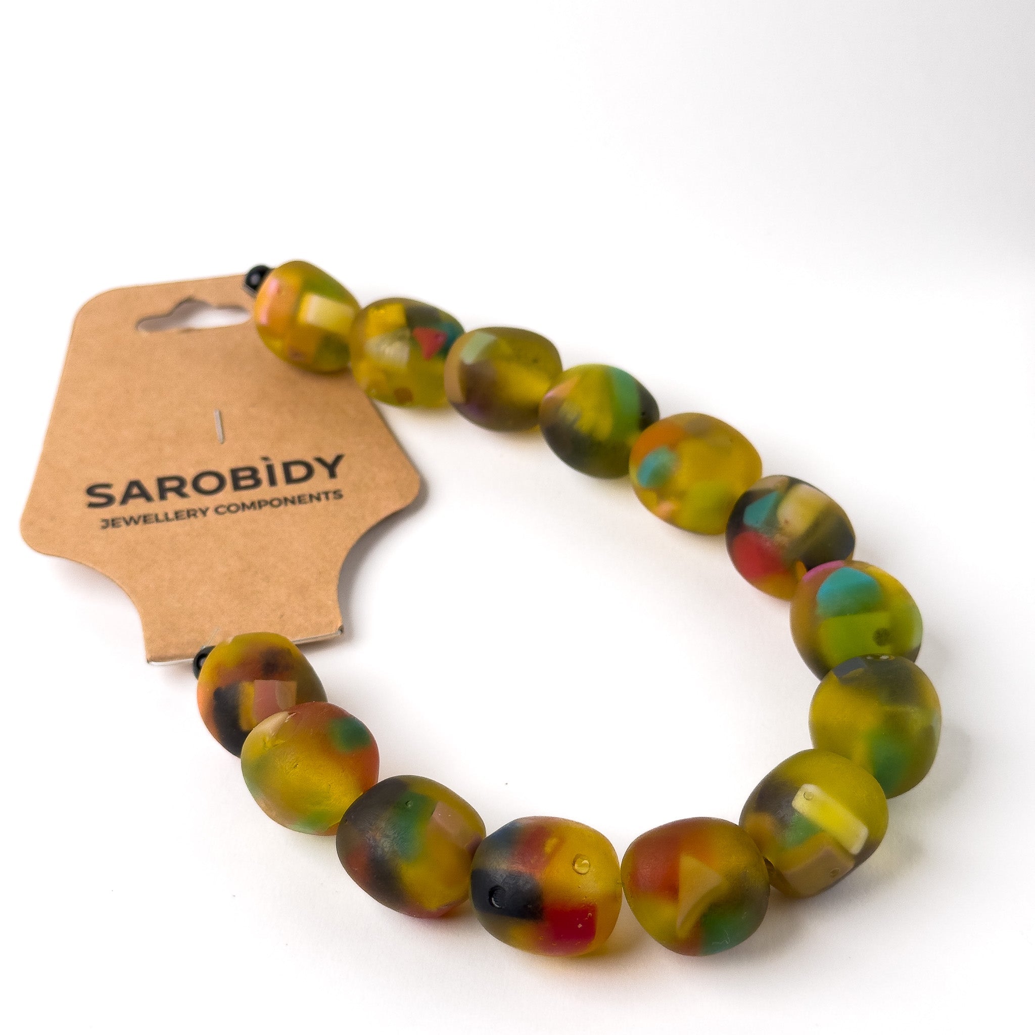 Con queste divertenti perle dai colori sfumati, montate con altri elementi sempre in resina Sarobidy, ho creato una originale collana lunga di ispirazione anni '70 che ha avuto grande successo. Siete sempre fornitori eccellenti!