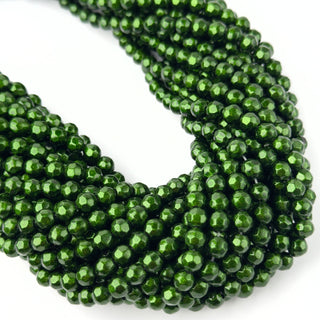 Perle Prisma Smaltate Verde Felce Tondo 6mm - Filo 40 cm