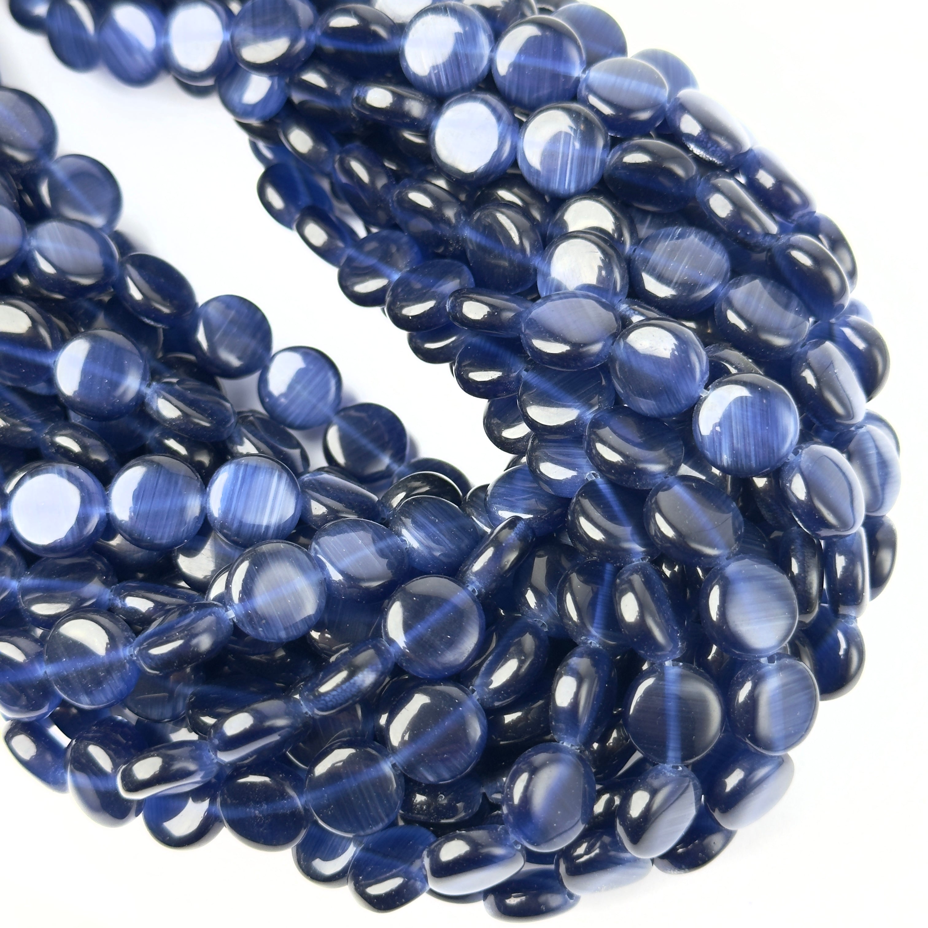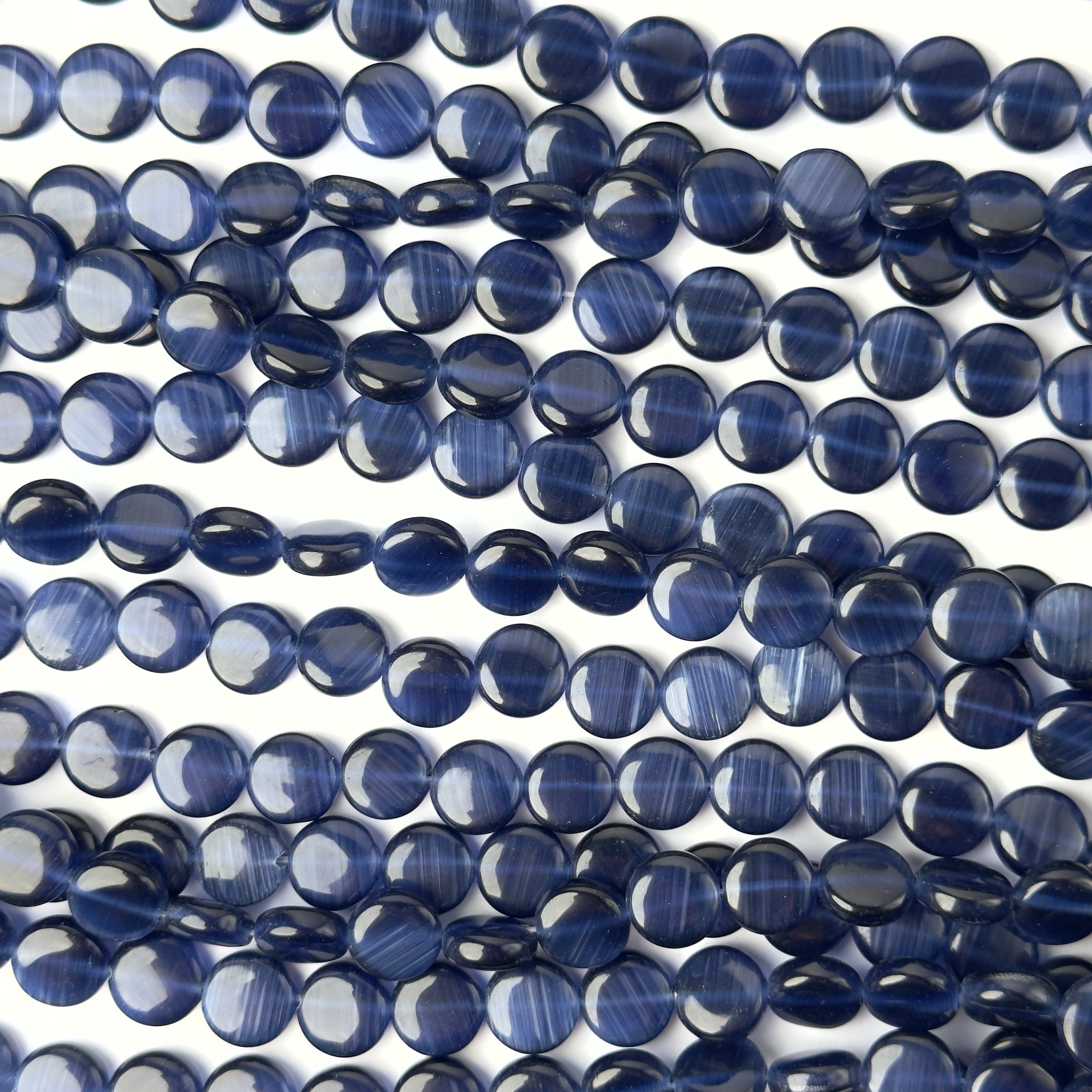 Perline Occhi di Gatto Disco Blu Notte 10mm - Filo da 40 cm