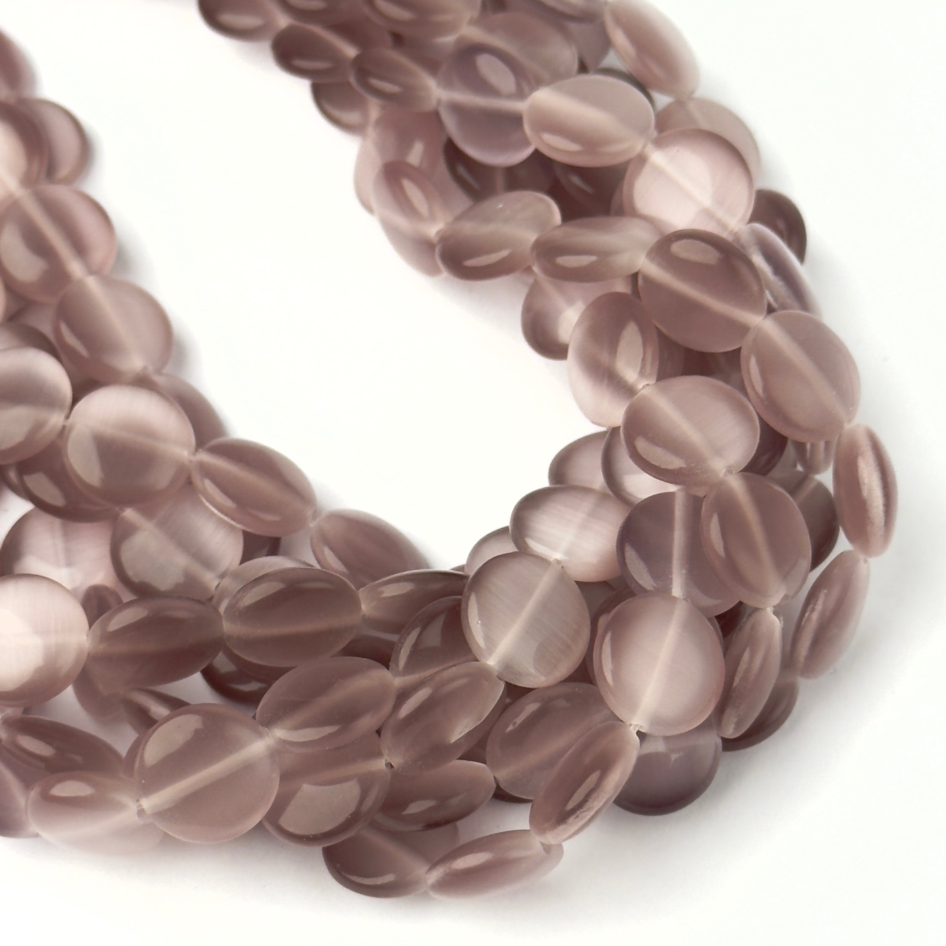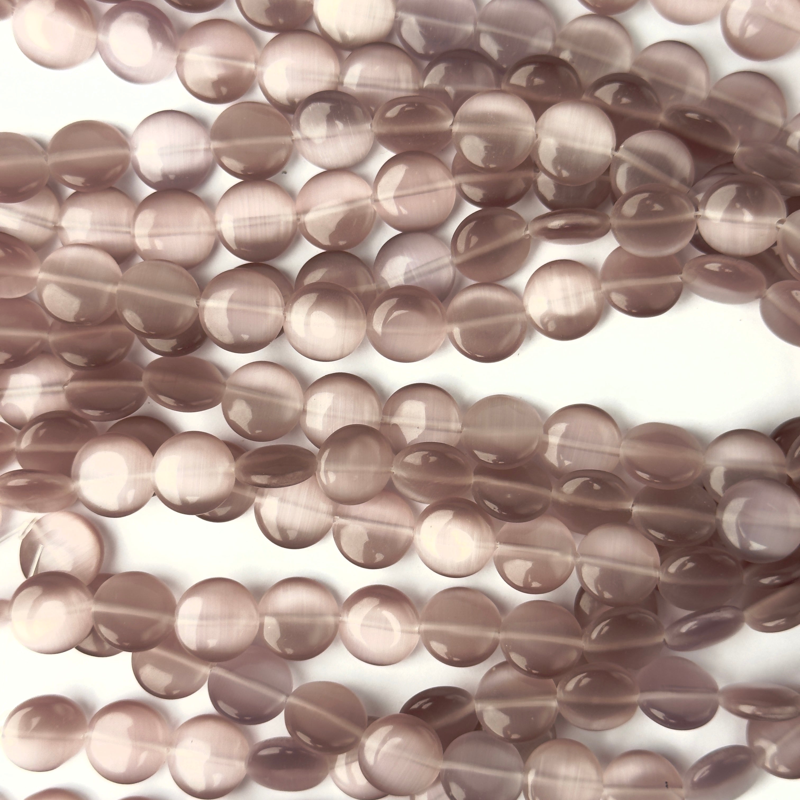 Perline Occhi di Gatto Disco Rosa Antico 12mm - Filo da 40 cm