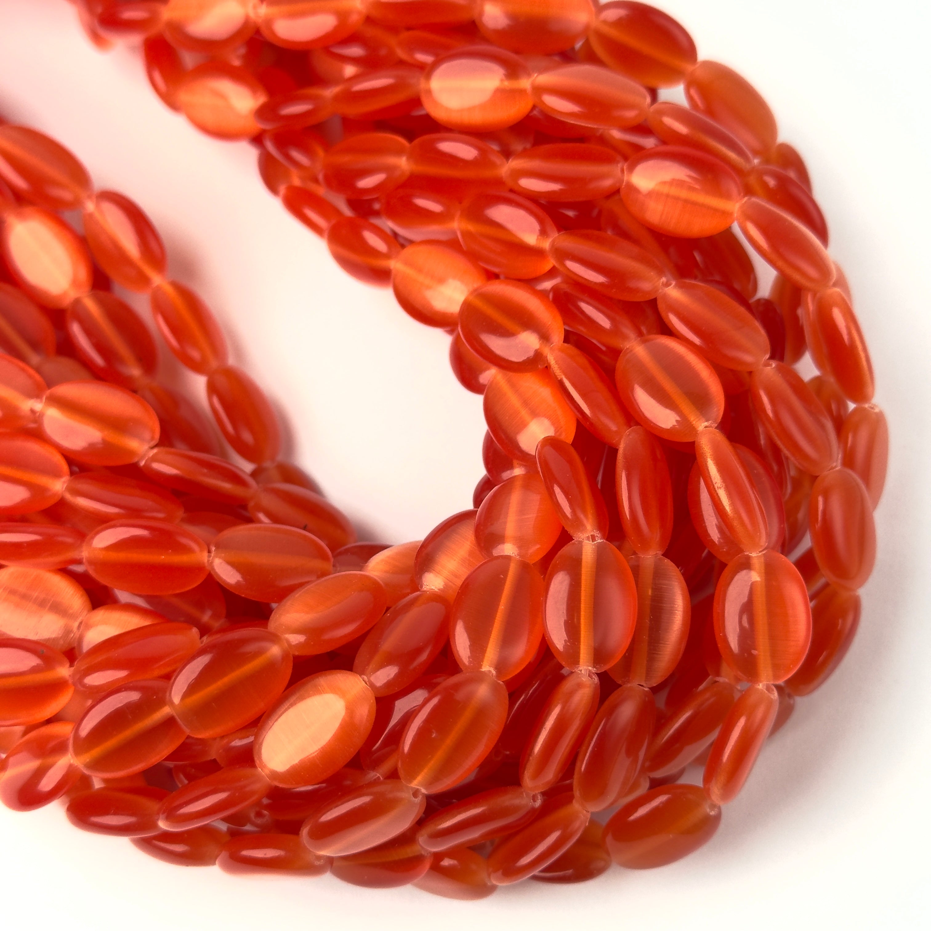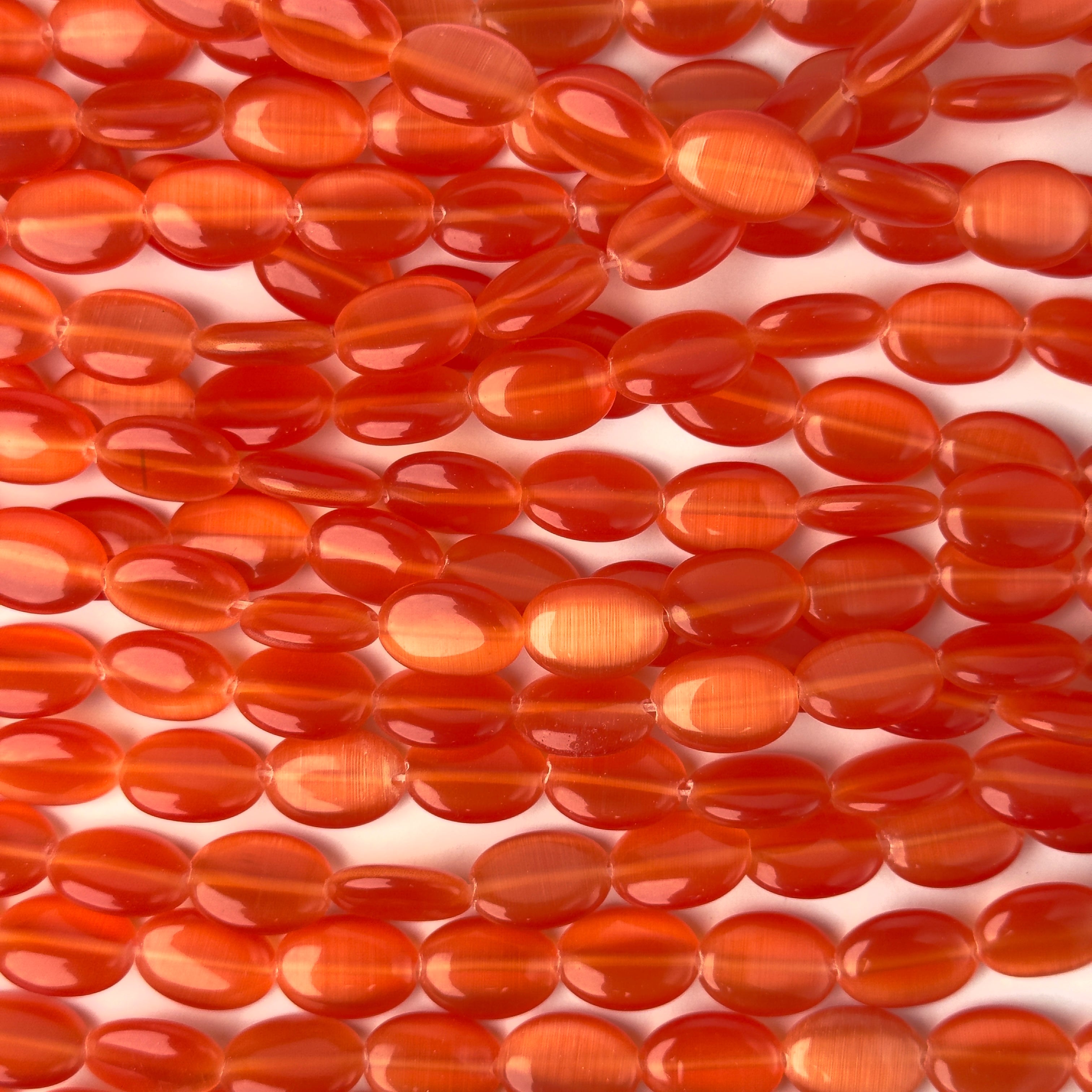 Perline Occhi di Gatto Ovale Arancione Scuro 14x10mm - Filo da 40 cm