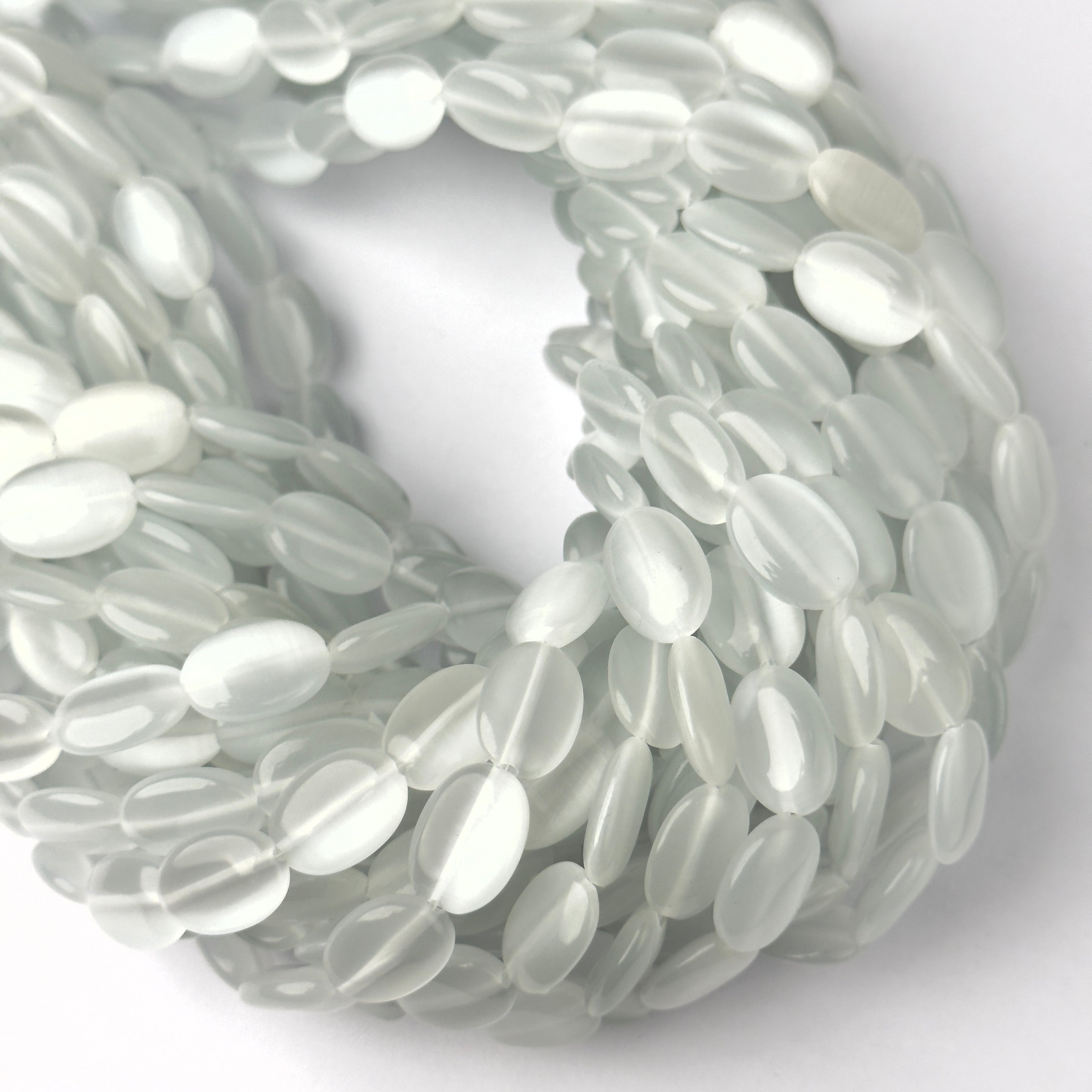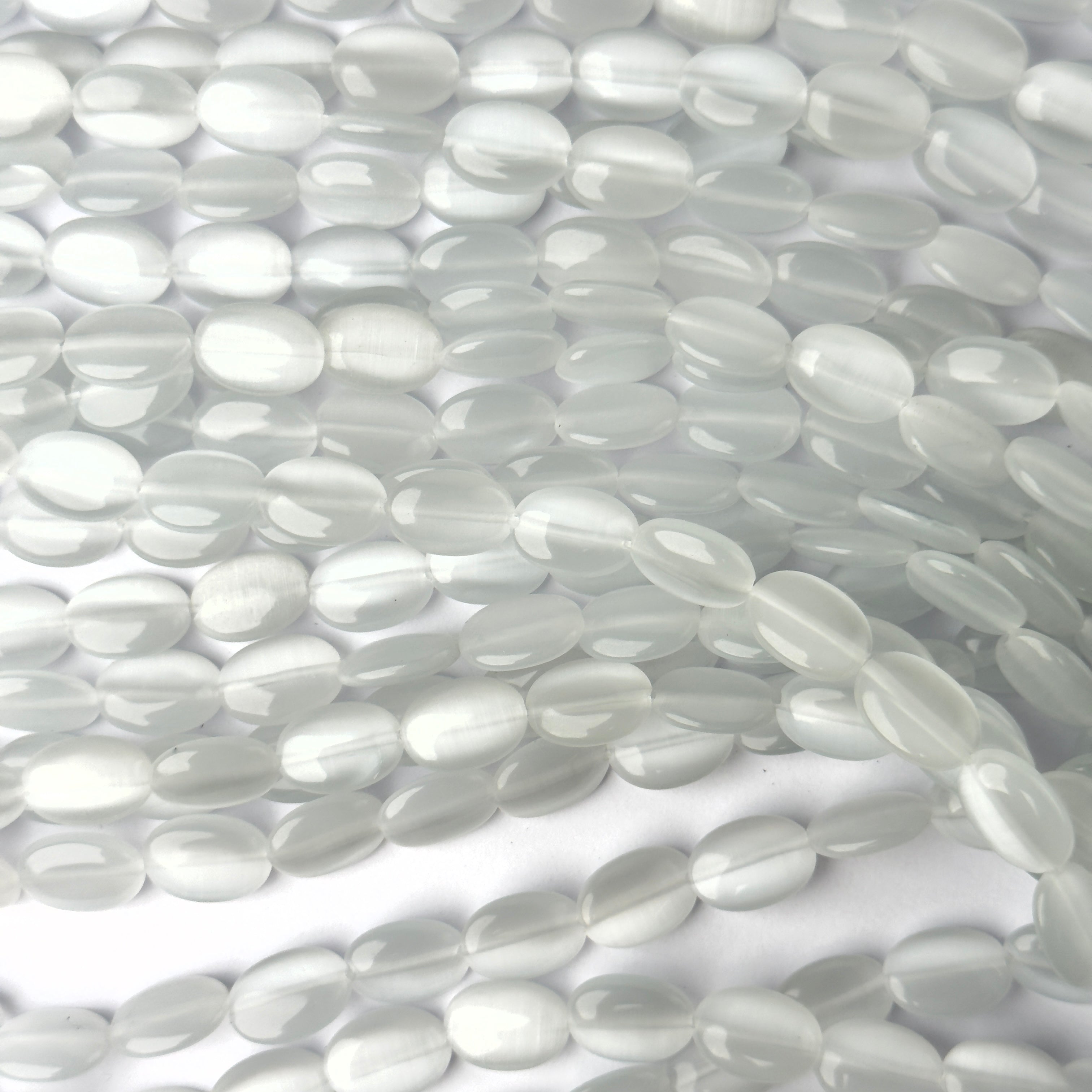 Perline Occhi di Gatto Ovale Bianco Latte 14x10mm - Filo da 40 cm