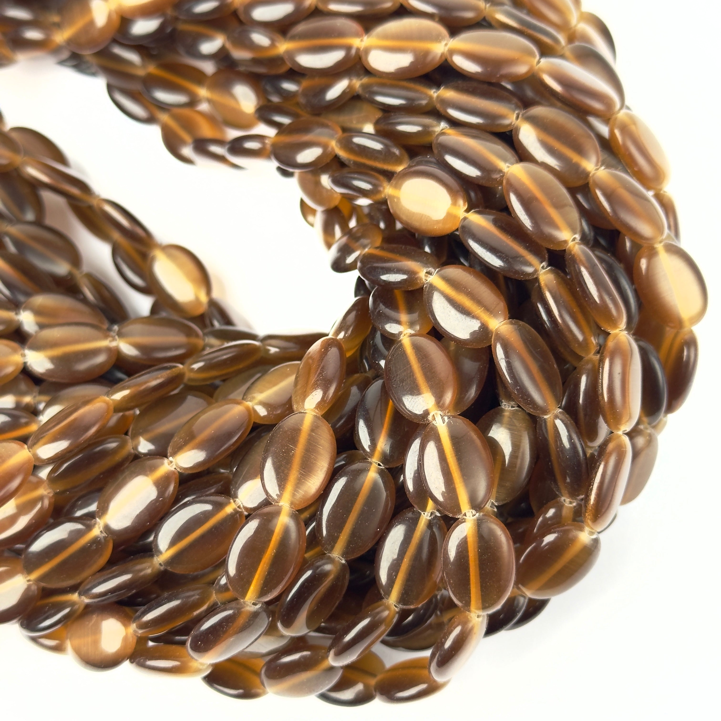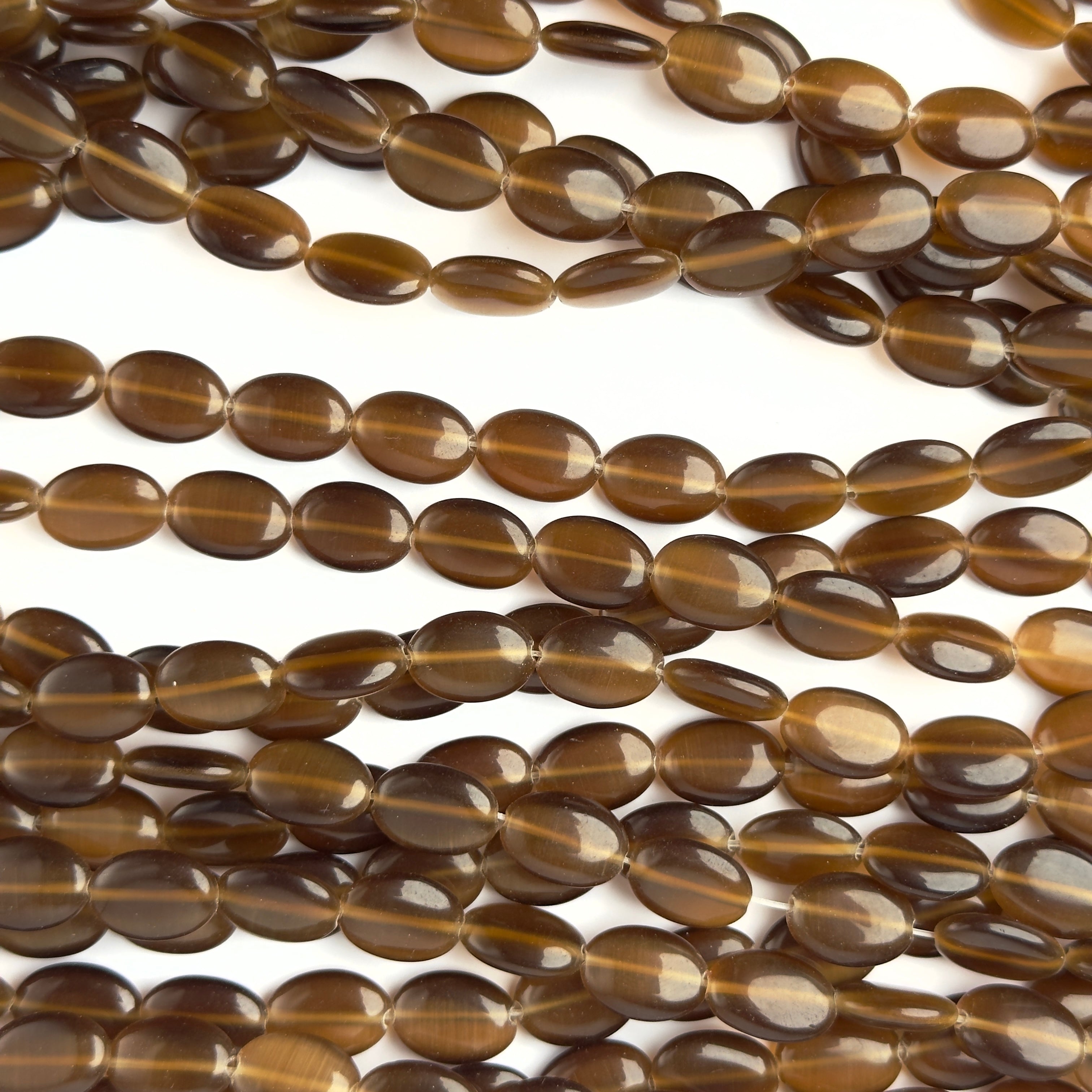 Perline Occhi di Gatto Ovale Marrone 14x10mm - Filo da 40 cm