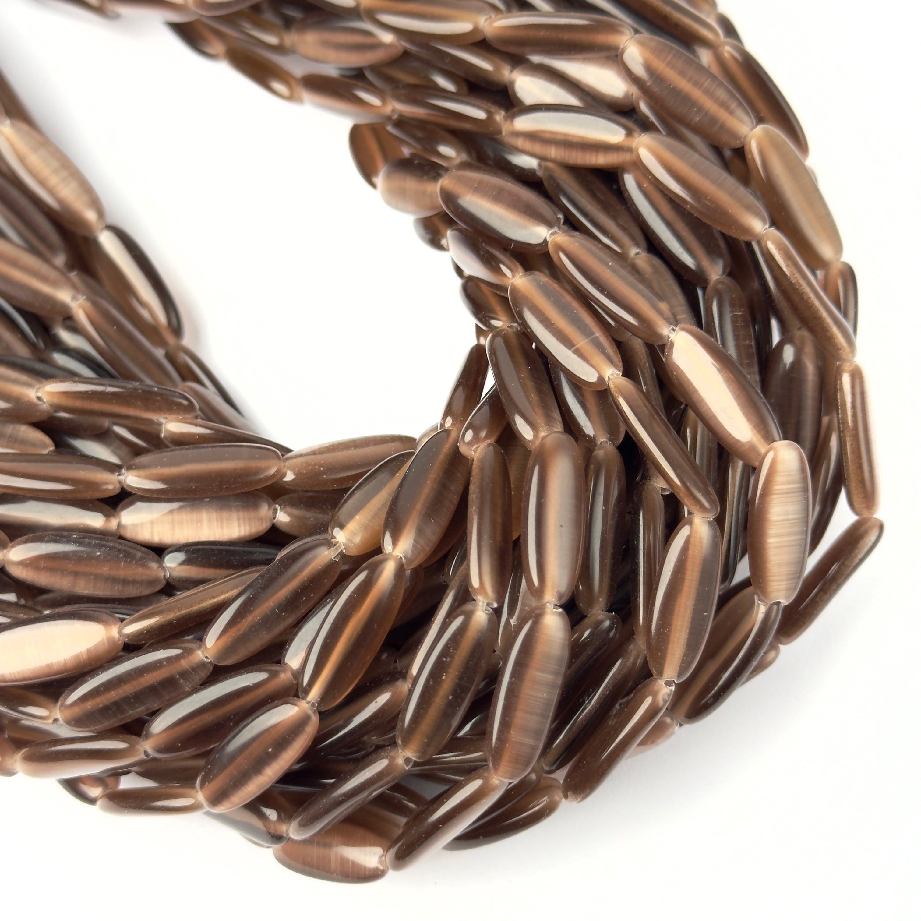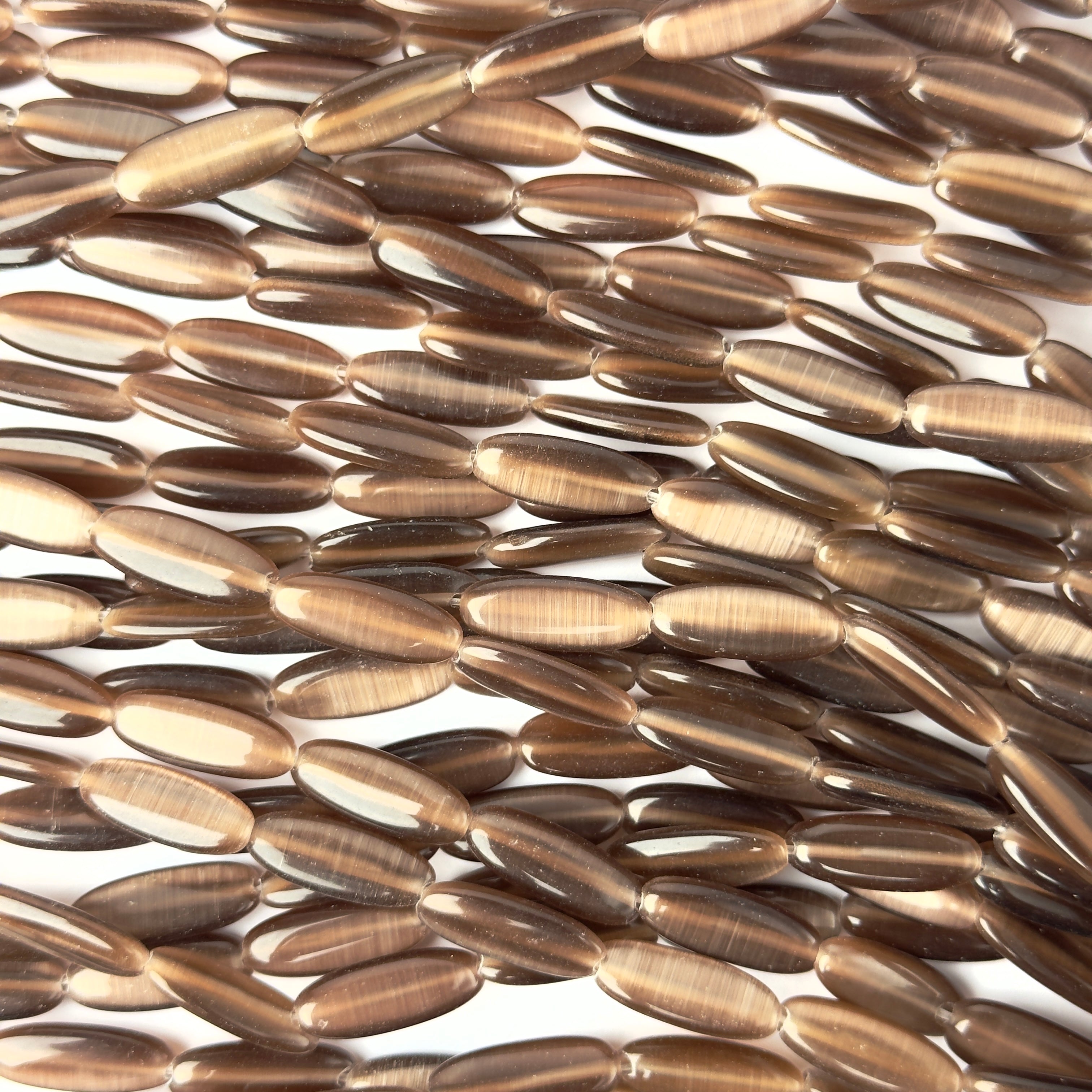 Perline Occhi di Gatto Ovale Marrone 18x7mm - Filo da 40 cm