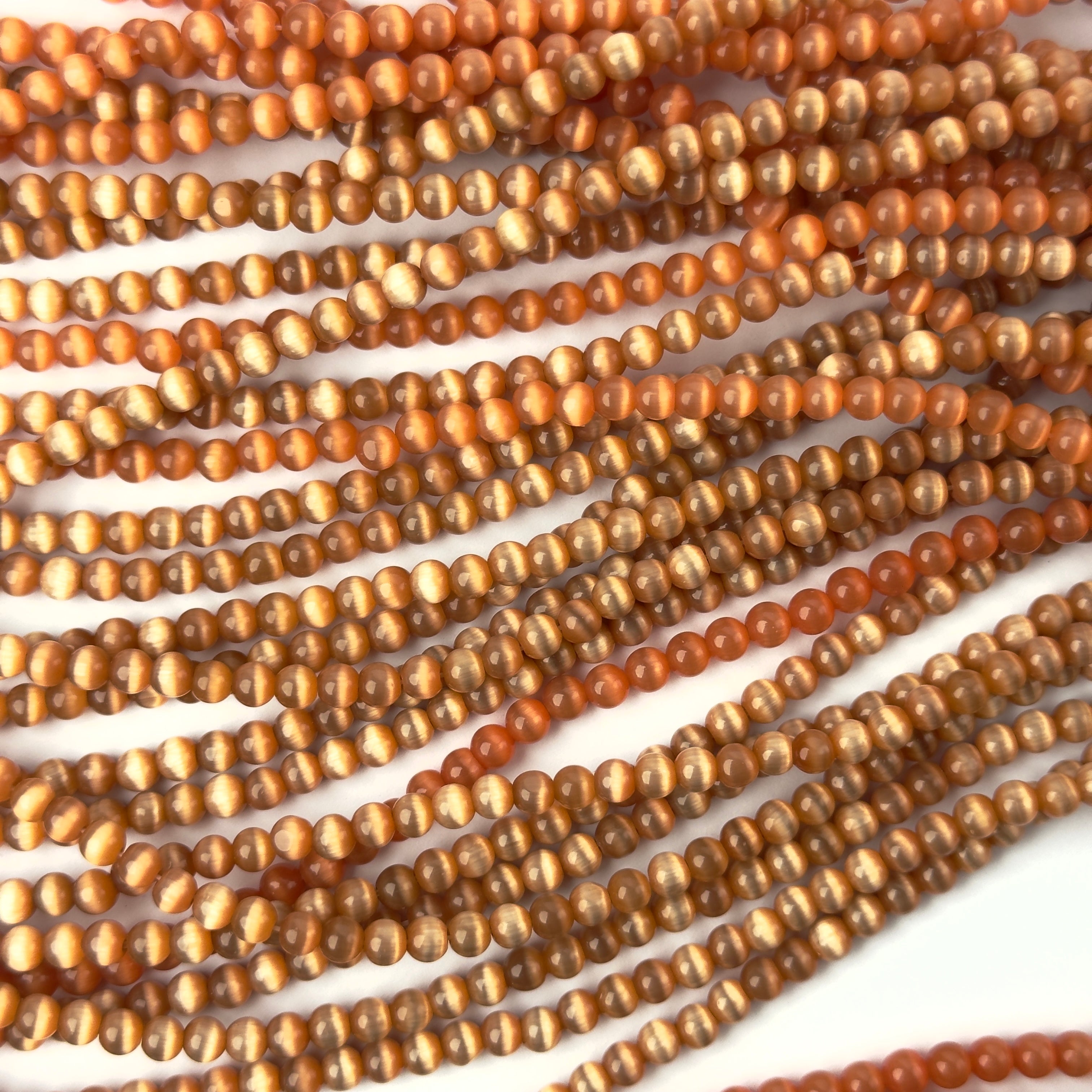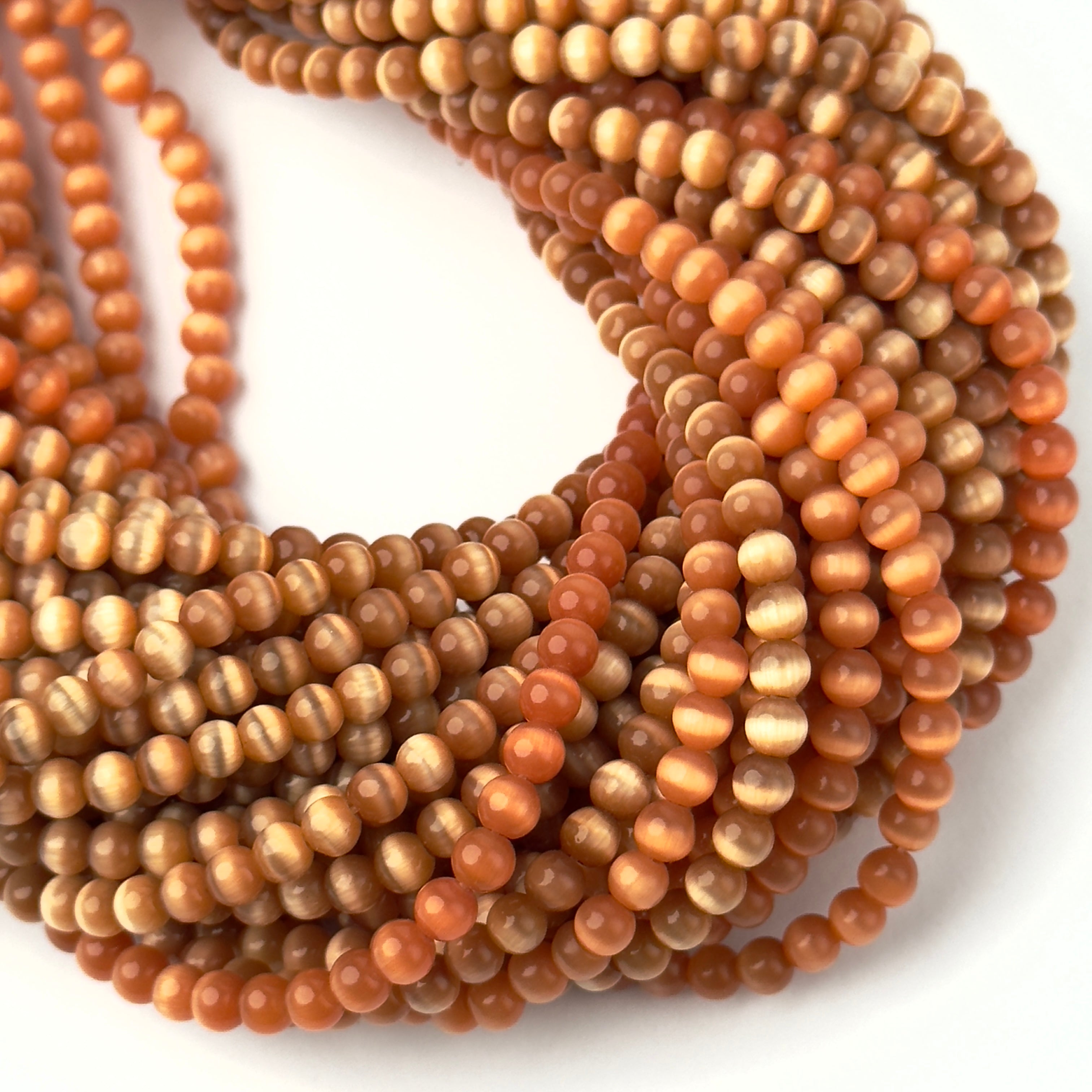 Perline Occhi di Gatto Tondo Arancione 4mm - Filo da 40 cm