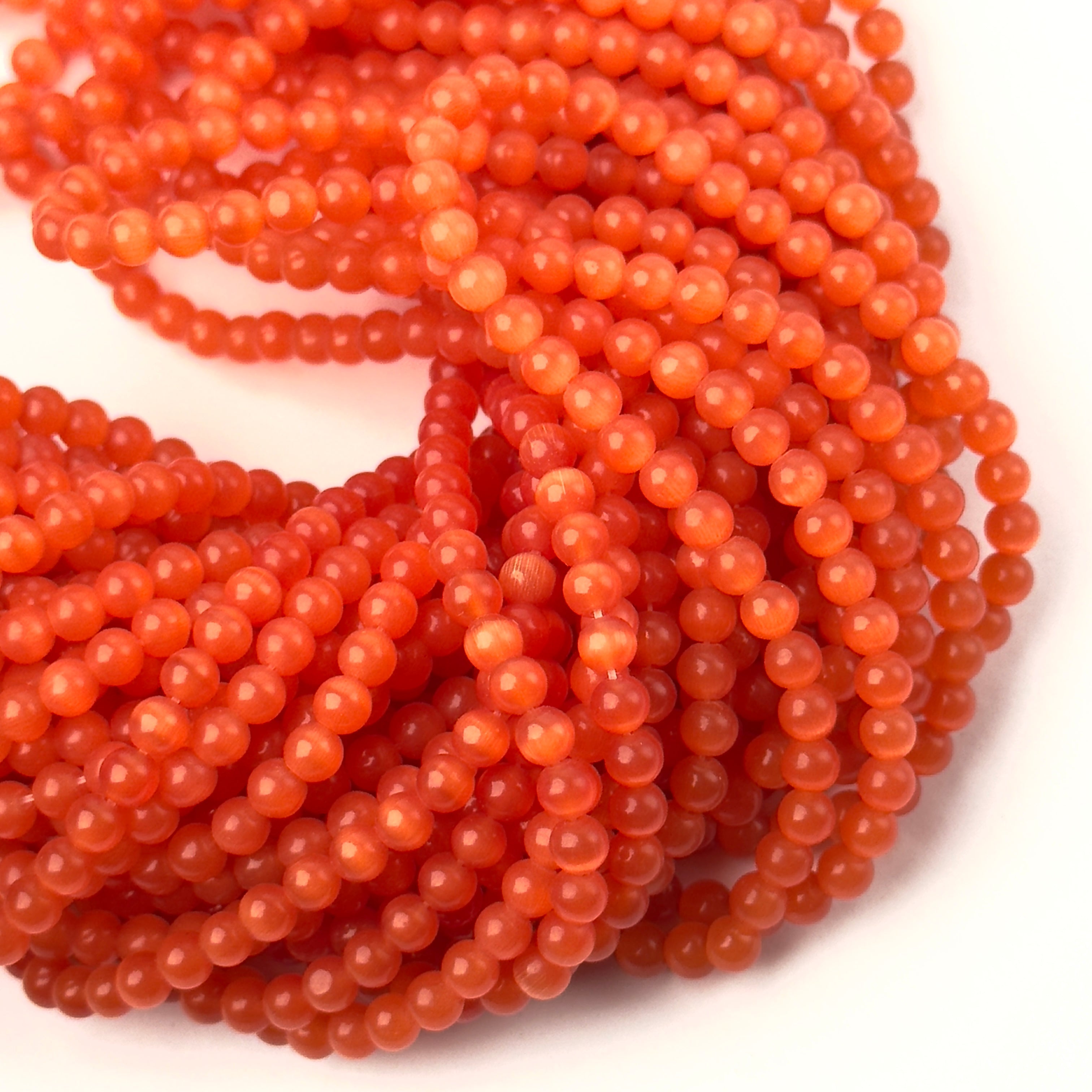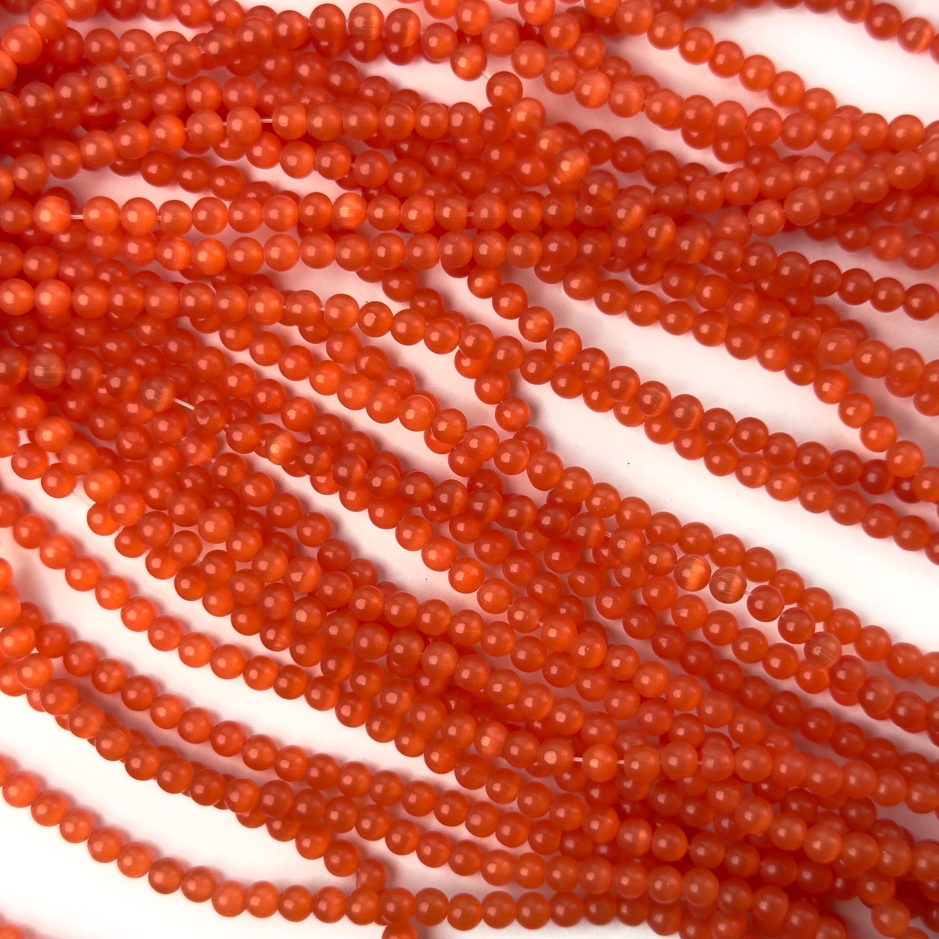 Perline Occhi di Gatto Tondo Arancione Zucca 4mm - Filo da 40 cm