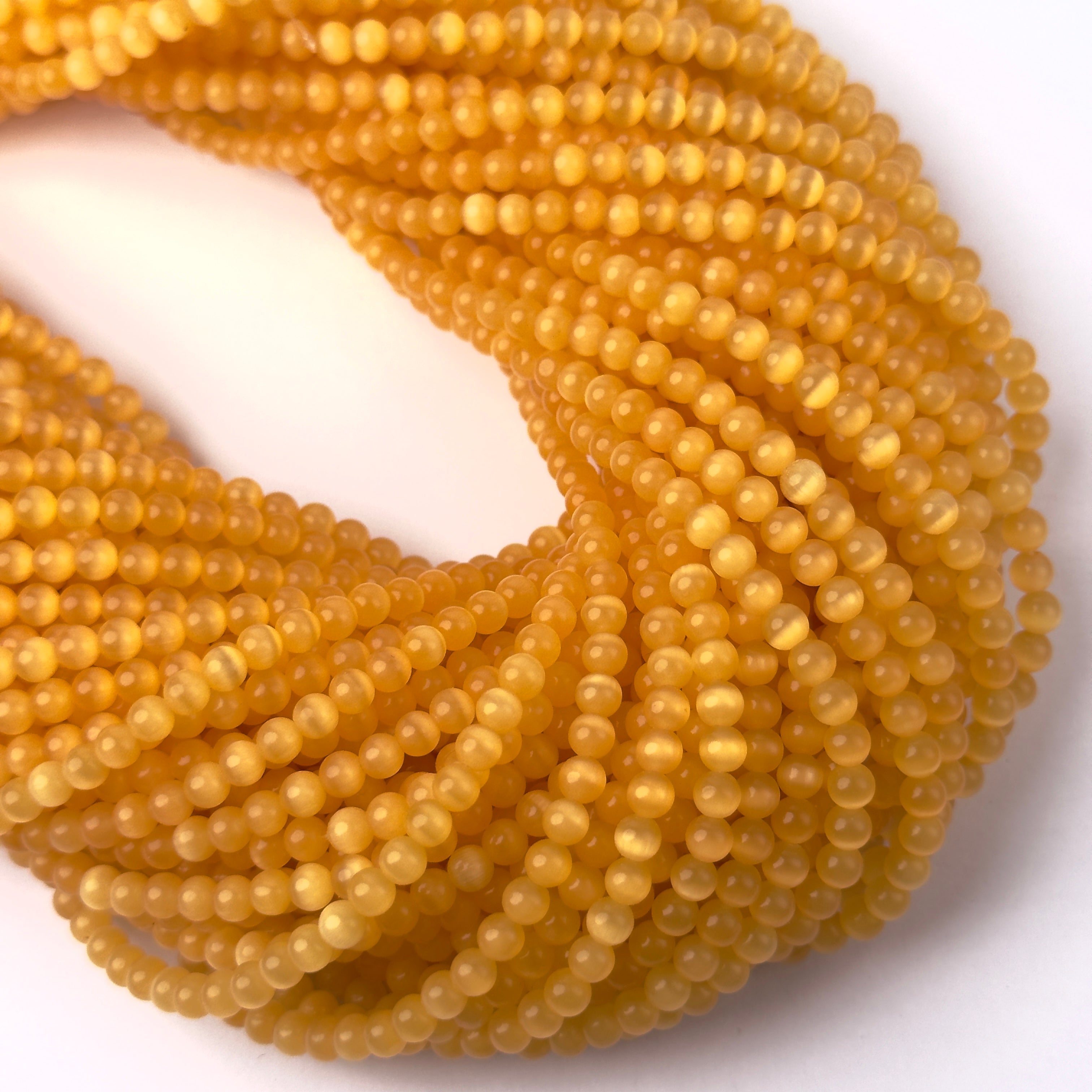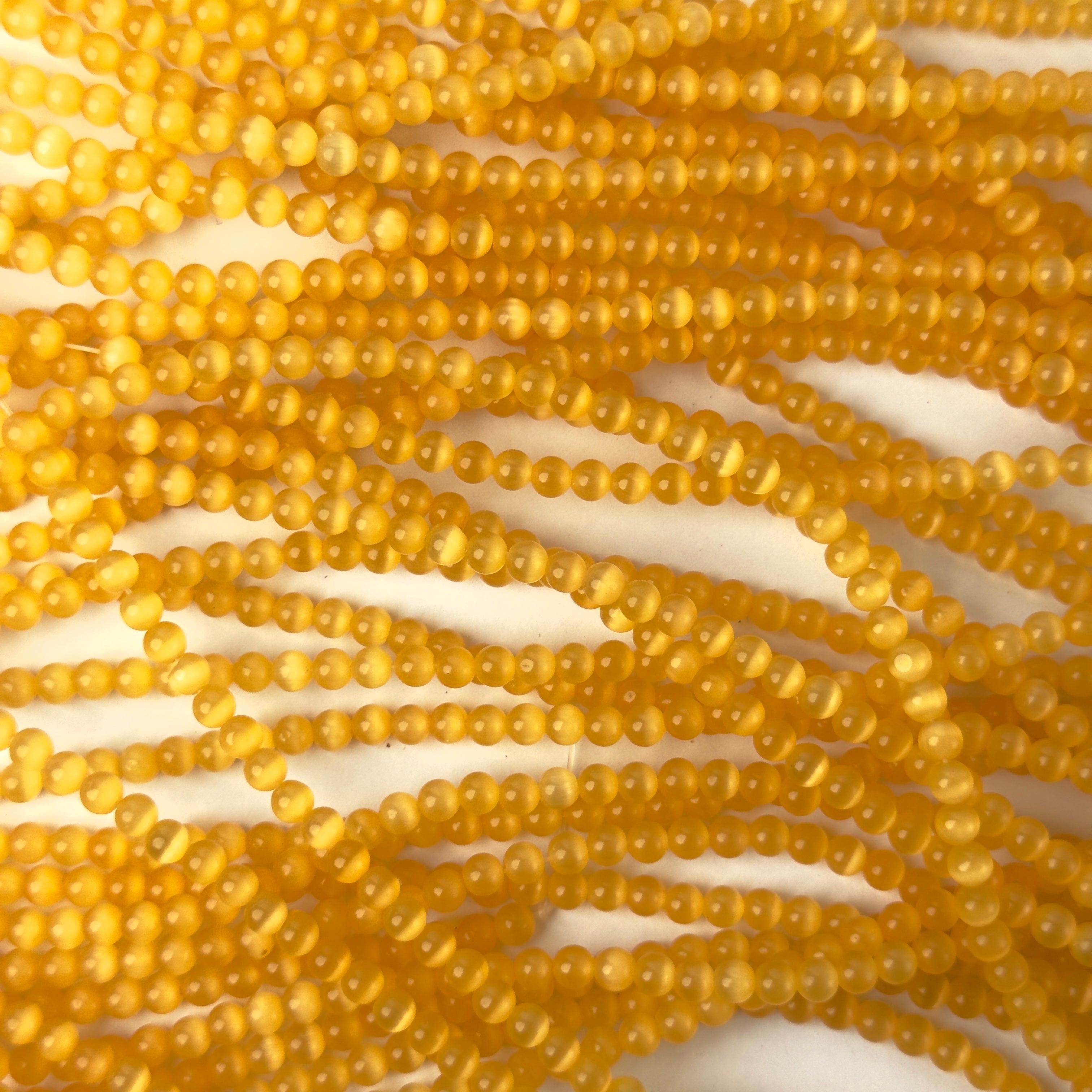 Perline Occhi di Gatto Tondo Giallo Miele 4mm - Filo da 40 cm