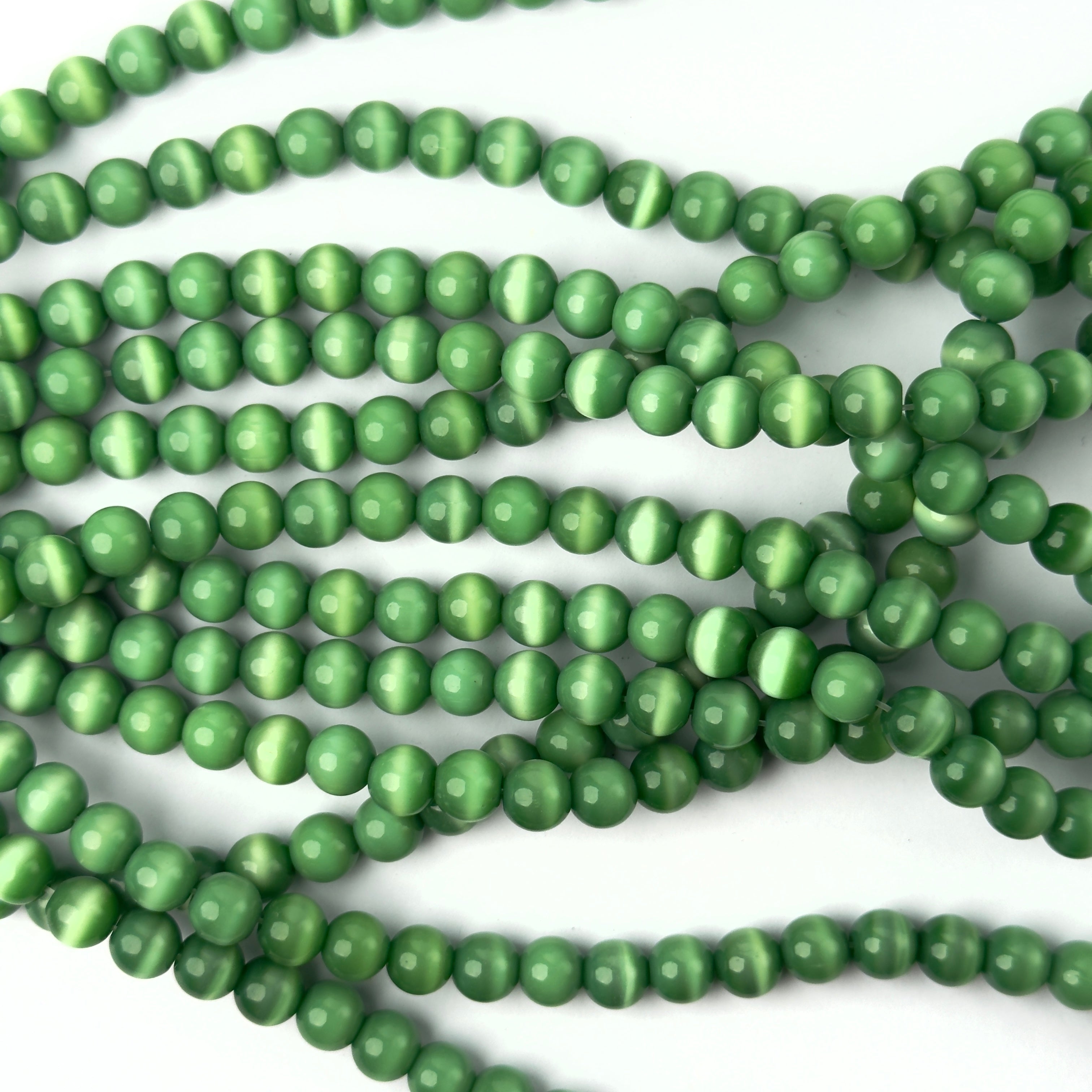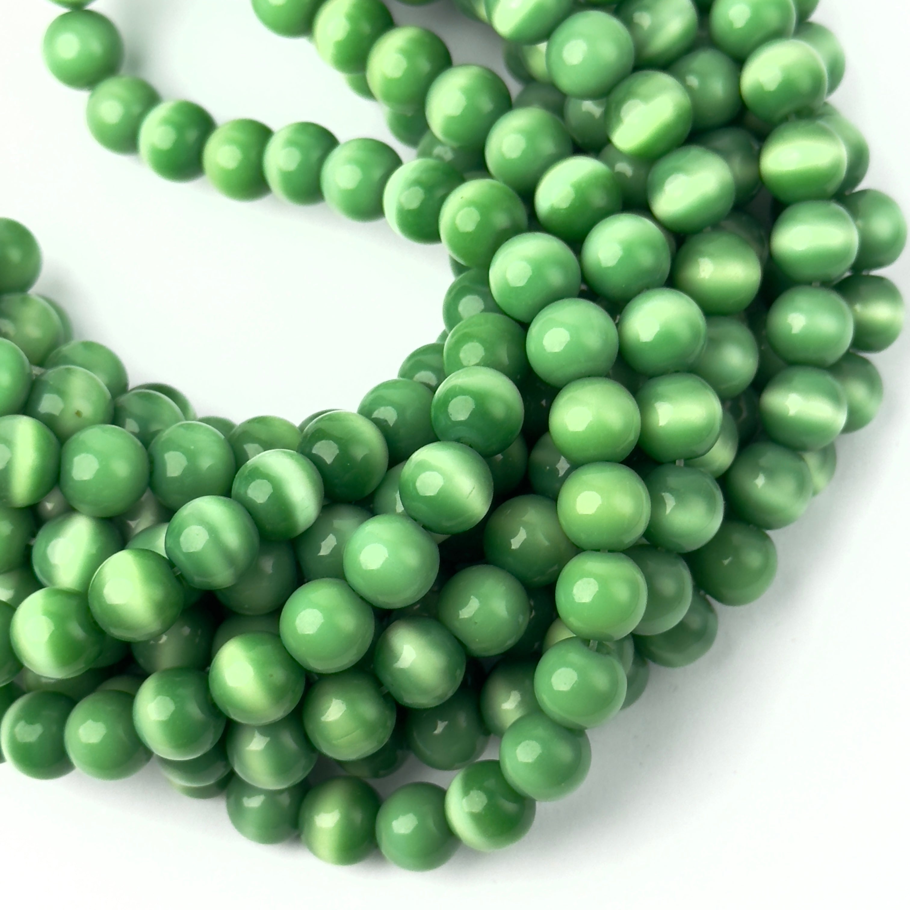 Perline Occhi di Gatto Tondo Verde 8mm - Filo da 40 cm