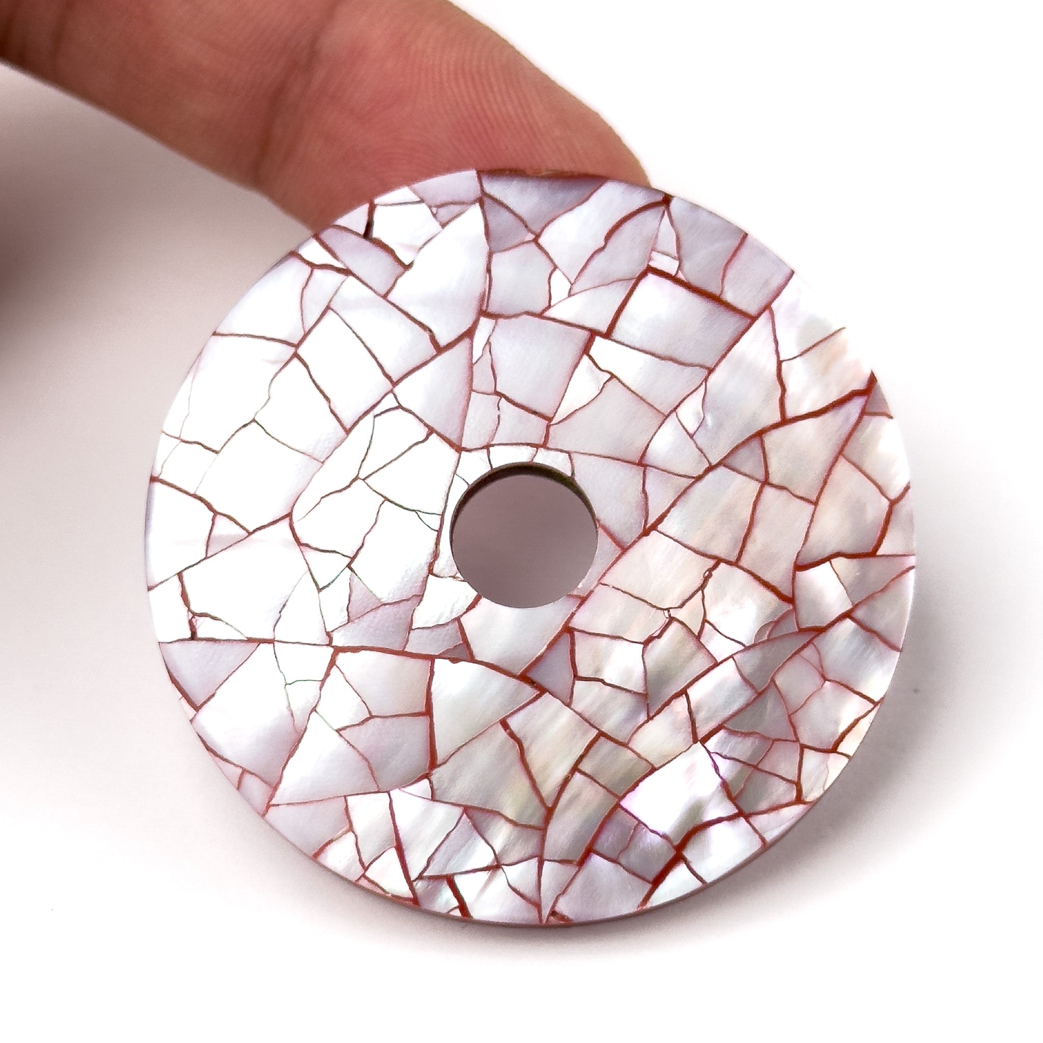 Un pezzo unico della nostra Collezione Artigianale "Luce d'Avorio". Questo componente unisce la lucentezza naturale della madreperla alla profondità della resina, in una delicata armonia di tonalità avorio.