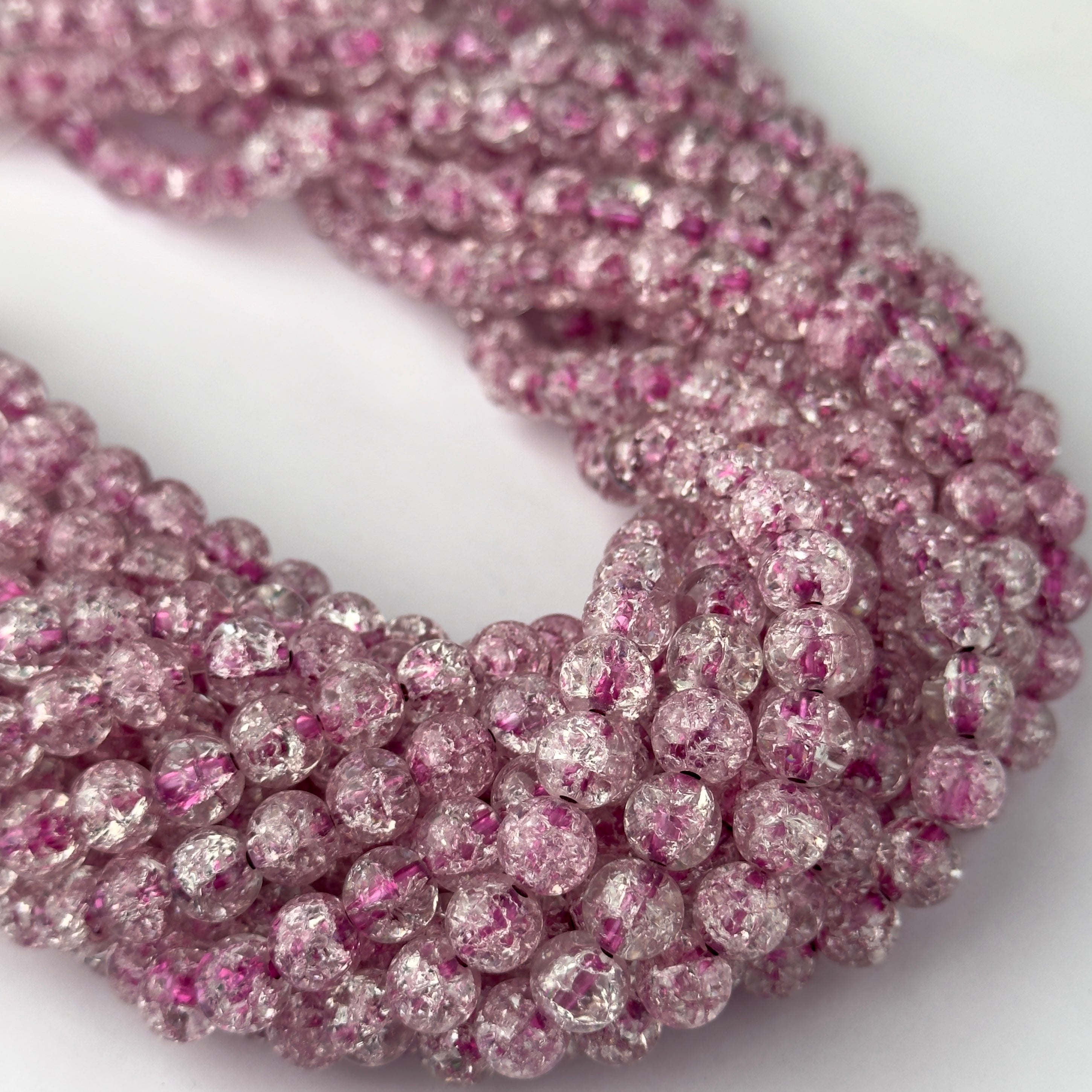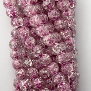 Perle di Vetro Cracklé Malva Tondo 8mm - Filo 40 cm