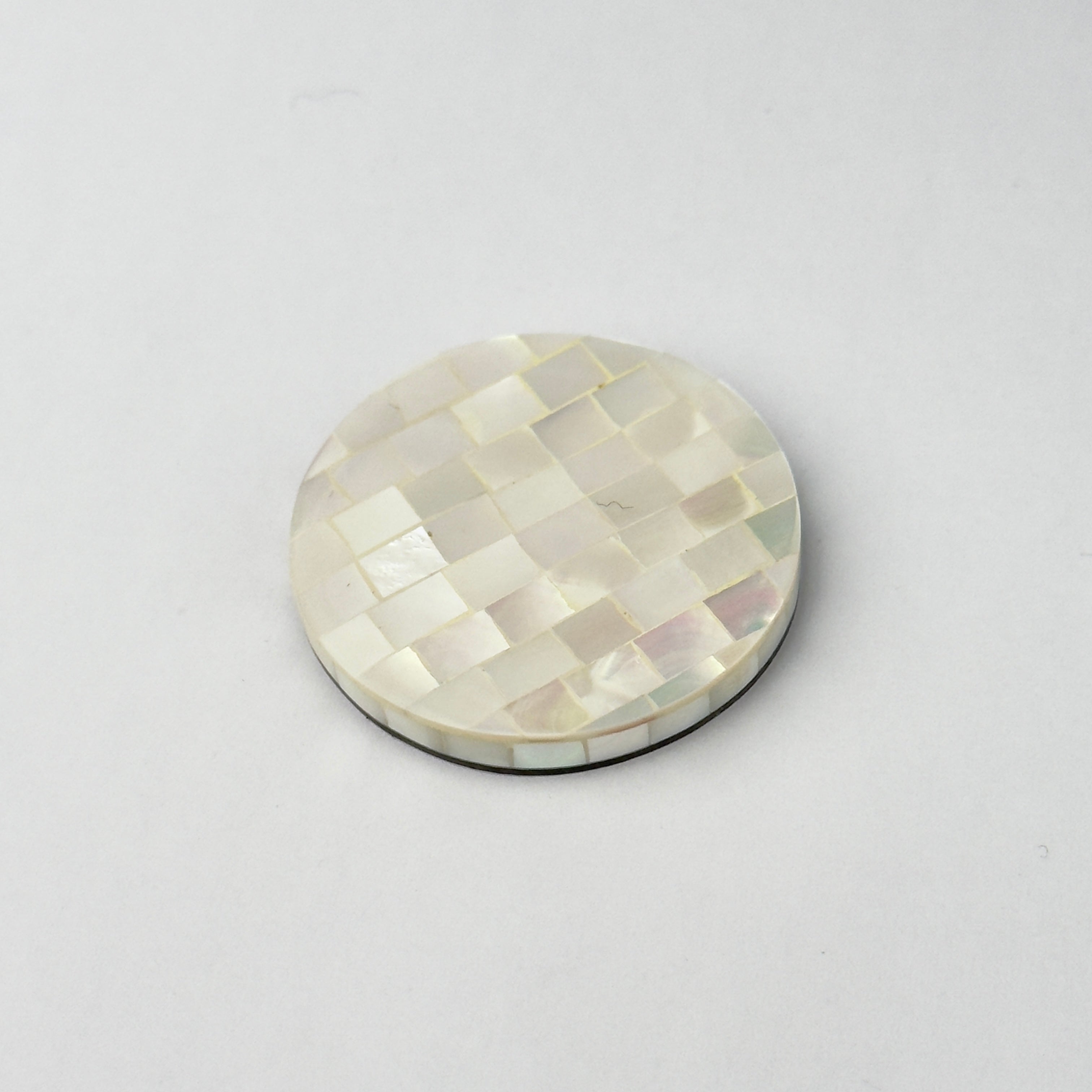 Un pezzo unico della nostra Collezione Artigianale "Luce d'Avorio". Questo componente unisce la lucentezza naturale della madreperla alla profondità della resina, in una delicata armonia di tonalità avorio.