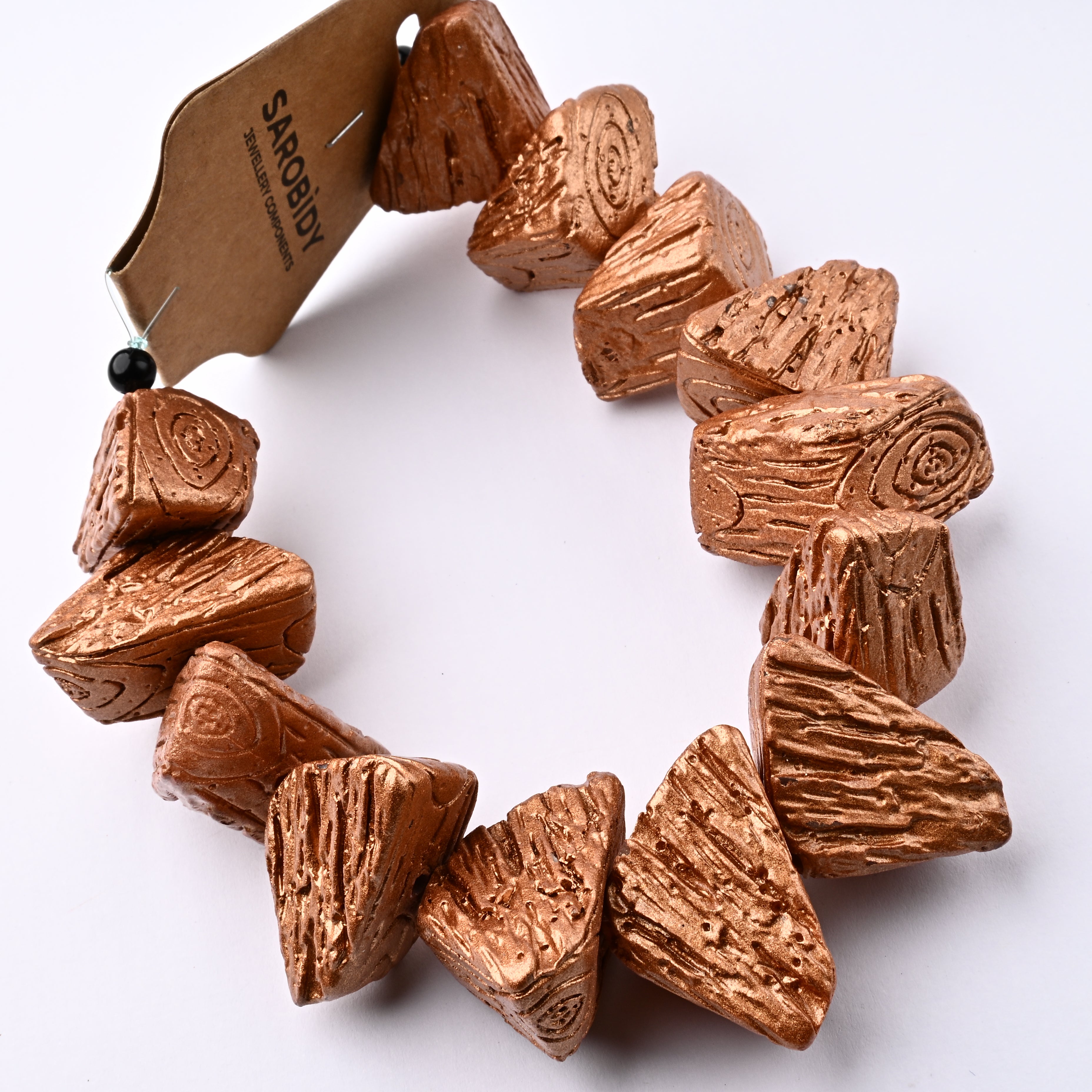 Filo di perle in resina caratterizzato da un design particolare e colori curati. Questi componenti sono pensati per chi cerca materiali alternativi alle forme classiche, offrendo un'estetica moderna e d'impatto. Le perle presentano una struttura solida e ben definita, ideale per dare volume e stabilità alle tue creazioni di bigiotteria fai-da-te.