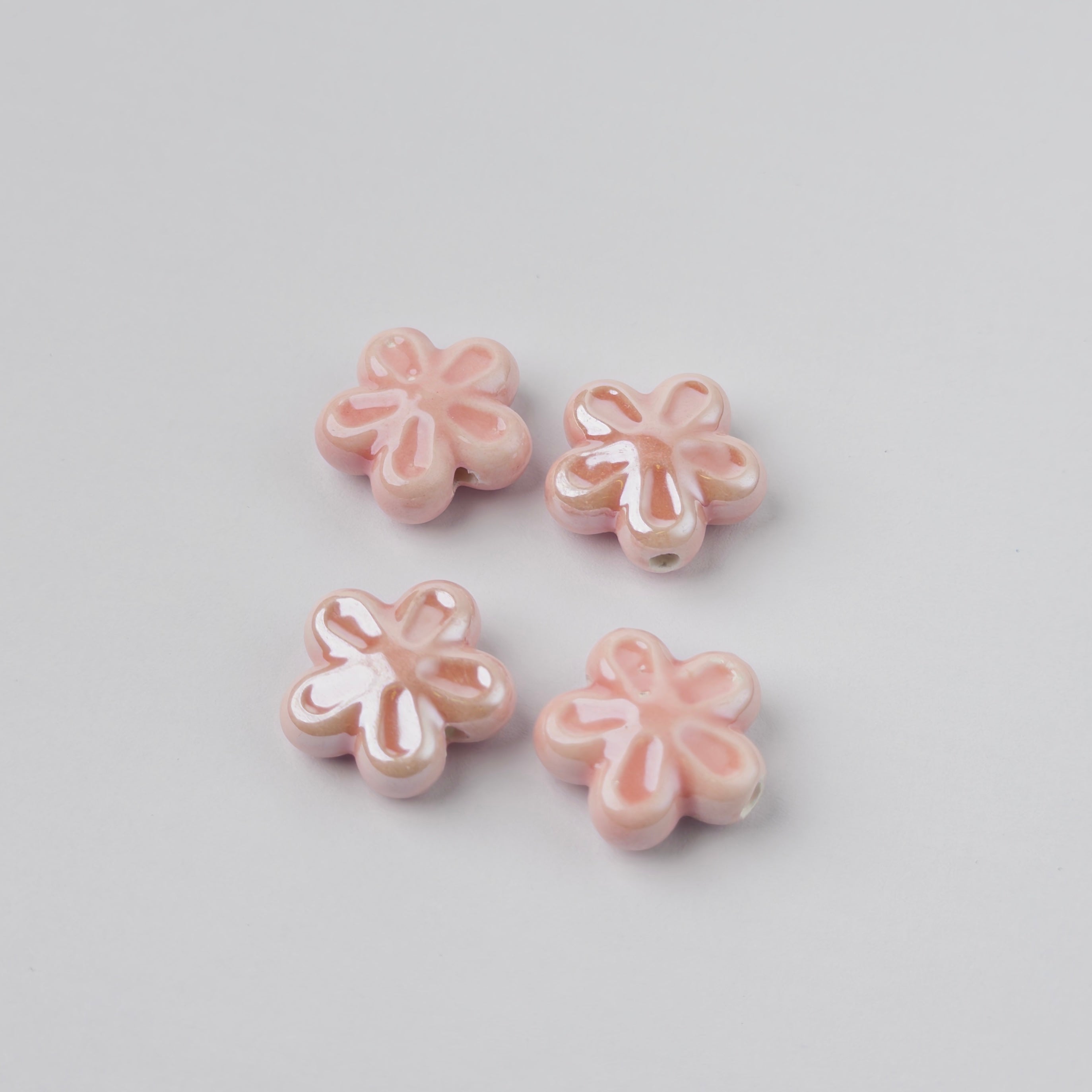 Perline in Ceramica Fiore Rosa Antico 19mm - 4 pz