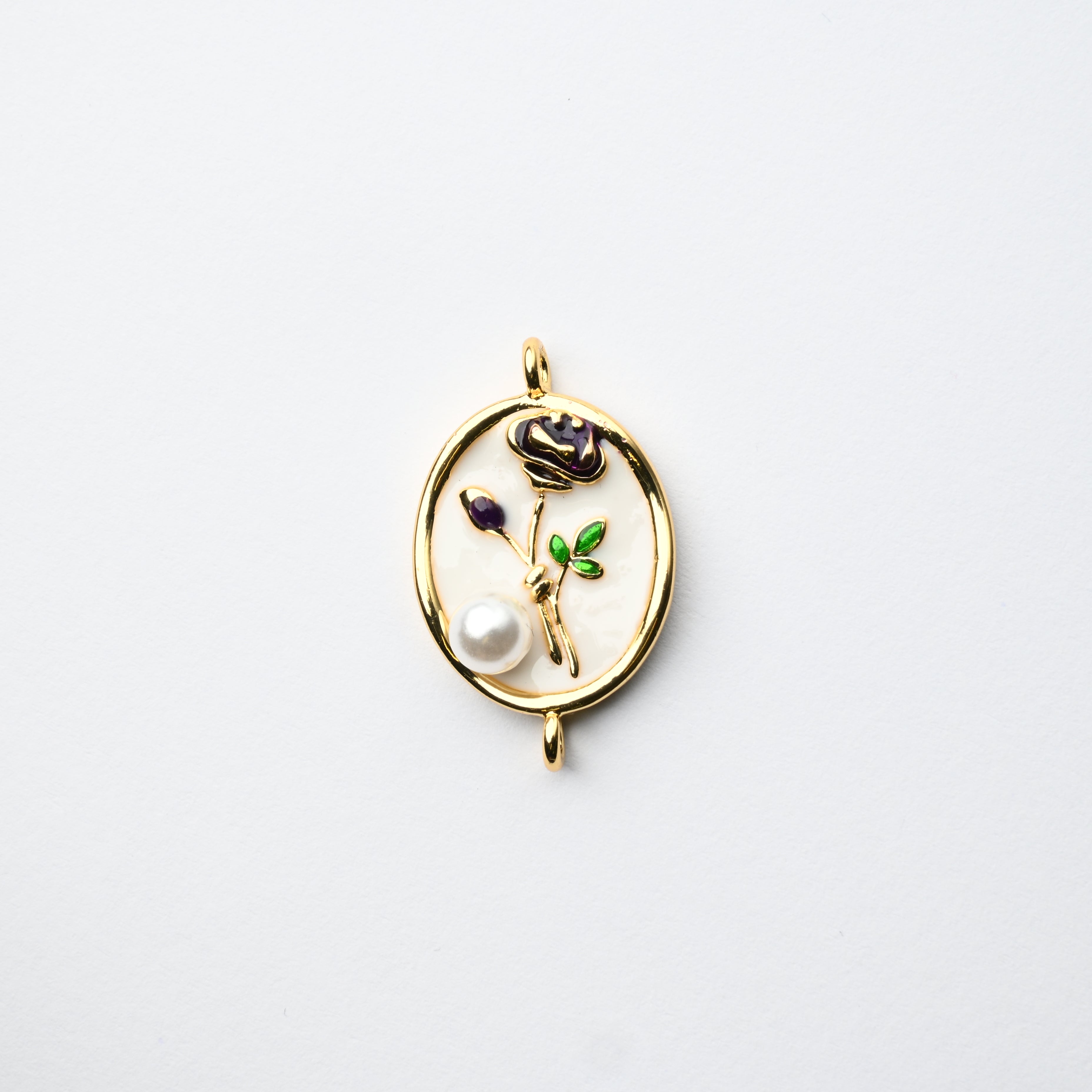 Ciondolo "Rosa Viola" con Perla e Doppio Anellino ovale 18x15mm - Artigianale