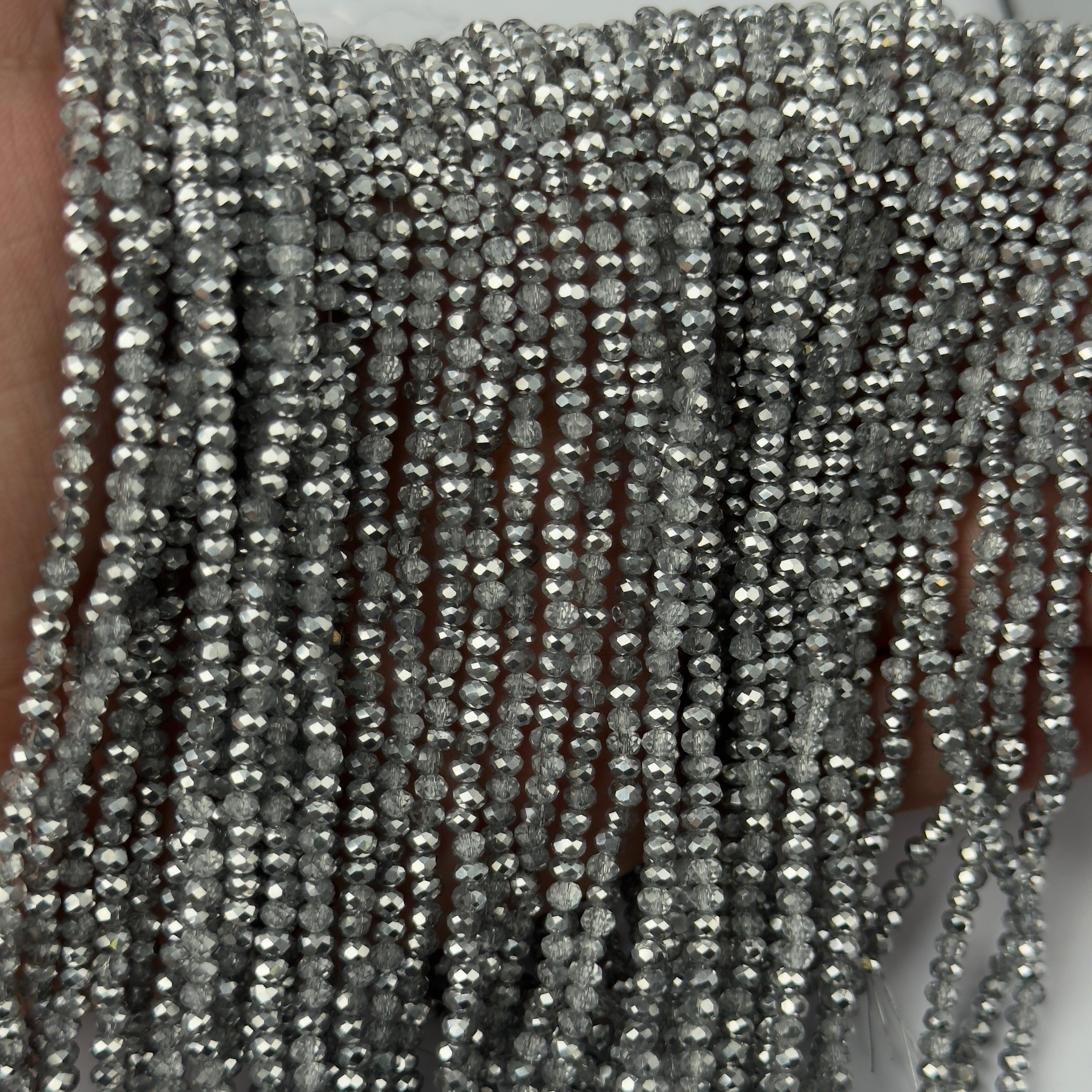 Cristalli Rondella Argento e Trasparente Bicolore 3x2mm - Filo da 40 cm | Sarobidy