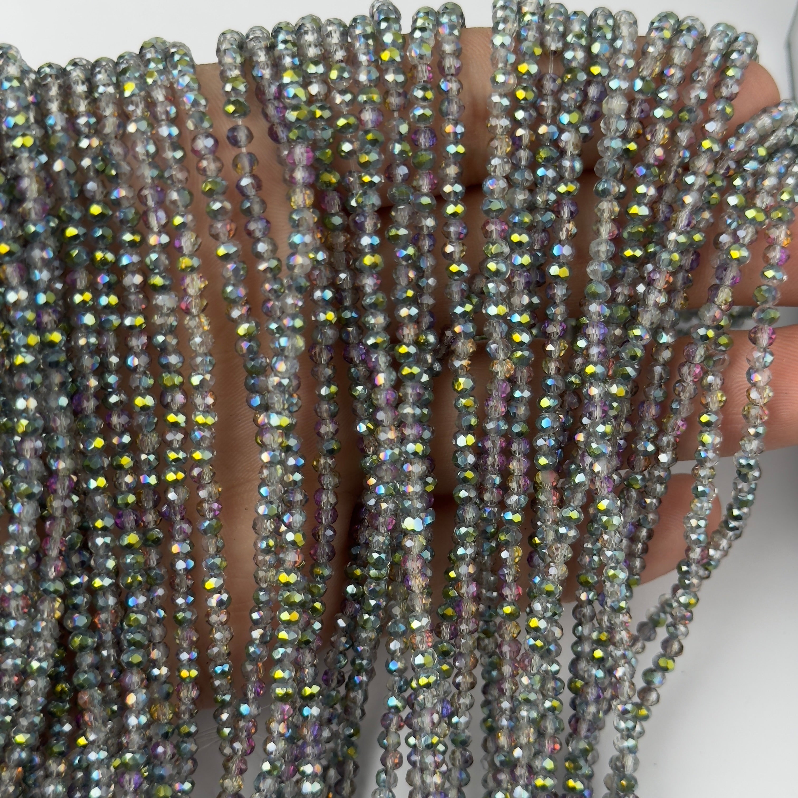Un vero e proprio 'must-have' per ogni creativa, le nostre rondelle di cristallo da 3mm sono l'ingrediente segreto per aggiungere dettagli di luce e raffinatezza a qualsiasi progetto. La loro misura compatta e le precise sfaccettature catturano la luce creando una brillantezza incredibile, ideale per dare un tocco professionale a ogni creazione.