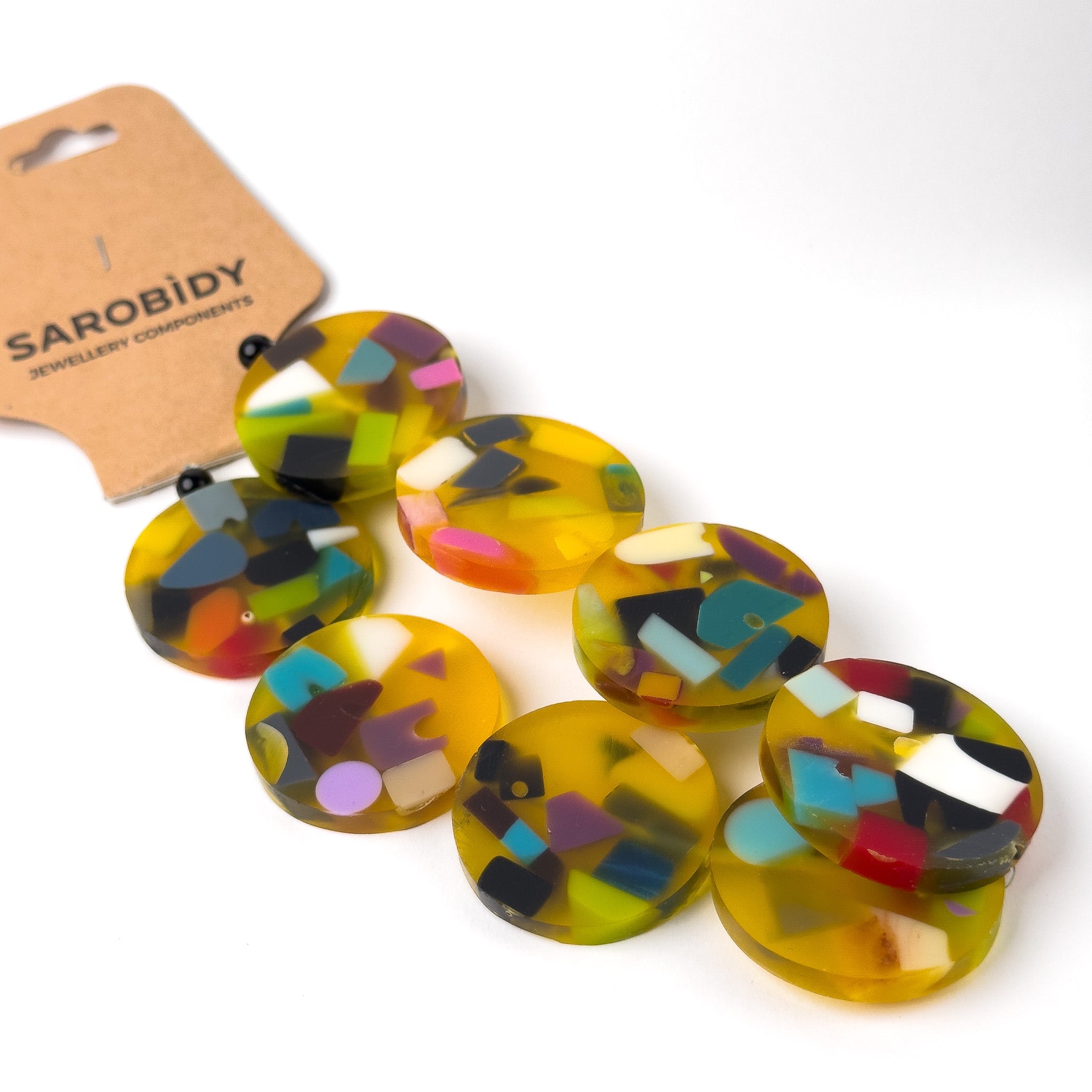 Perle in Resina Artigianali Disco Giallo 32x5mm