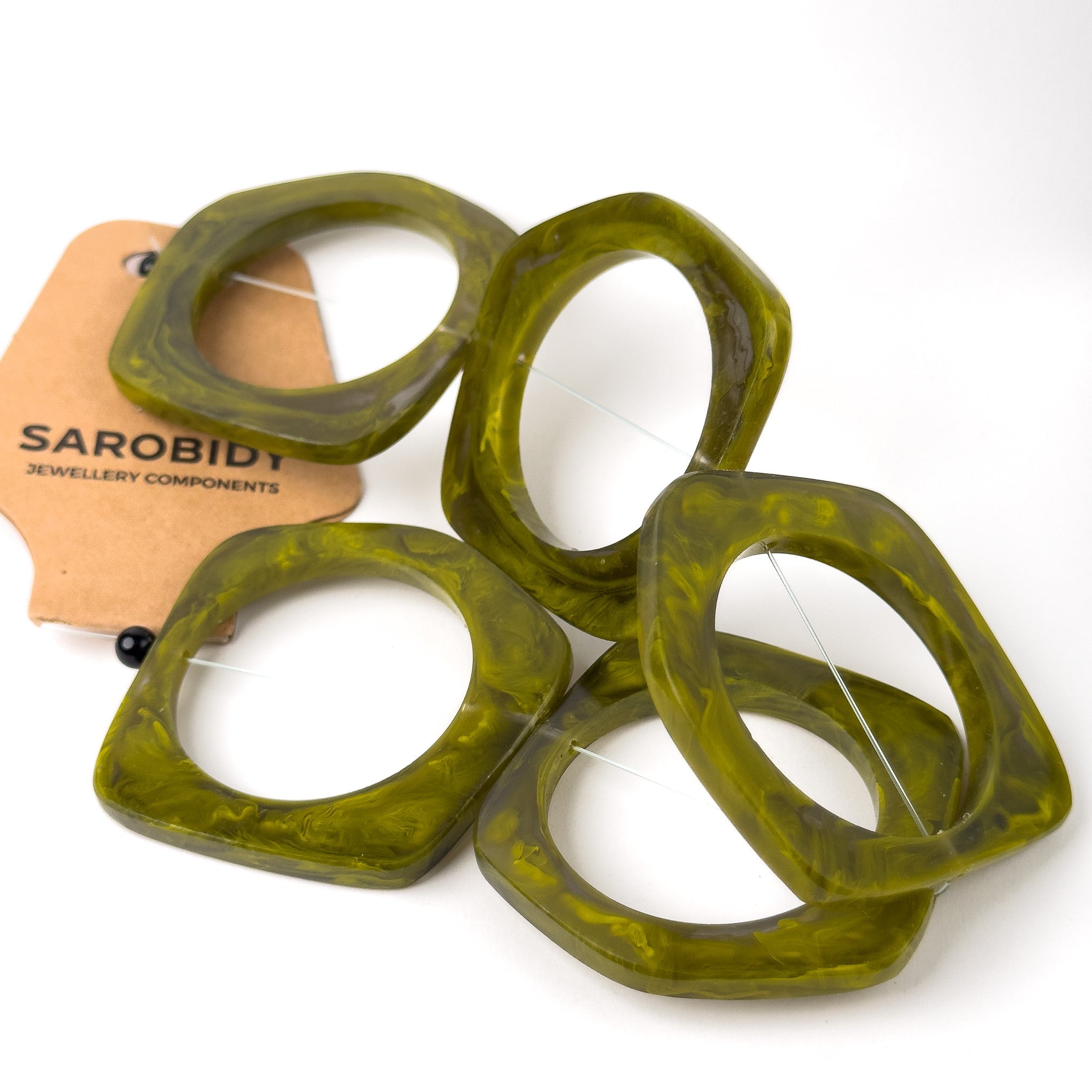 Perle in Resina Artigianali Pentagono Irregolare Verde 60mm
