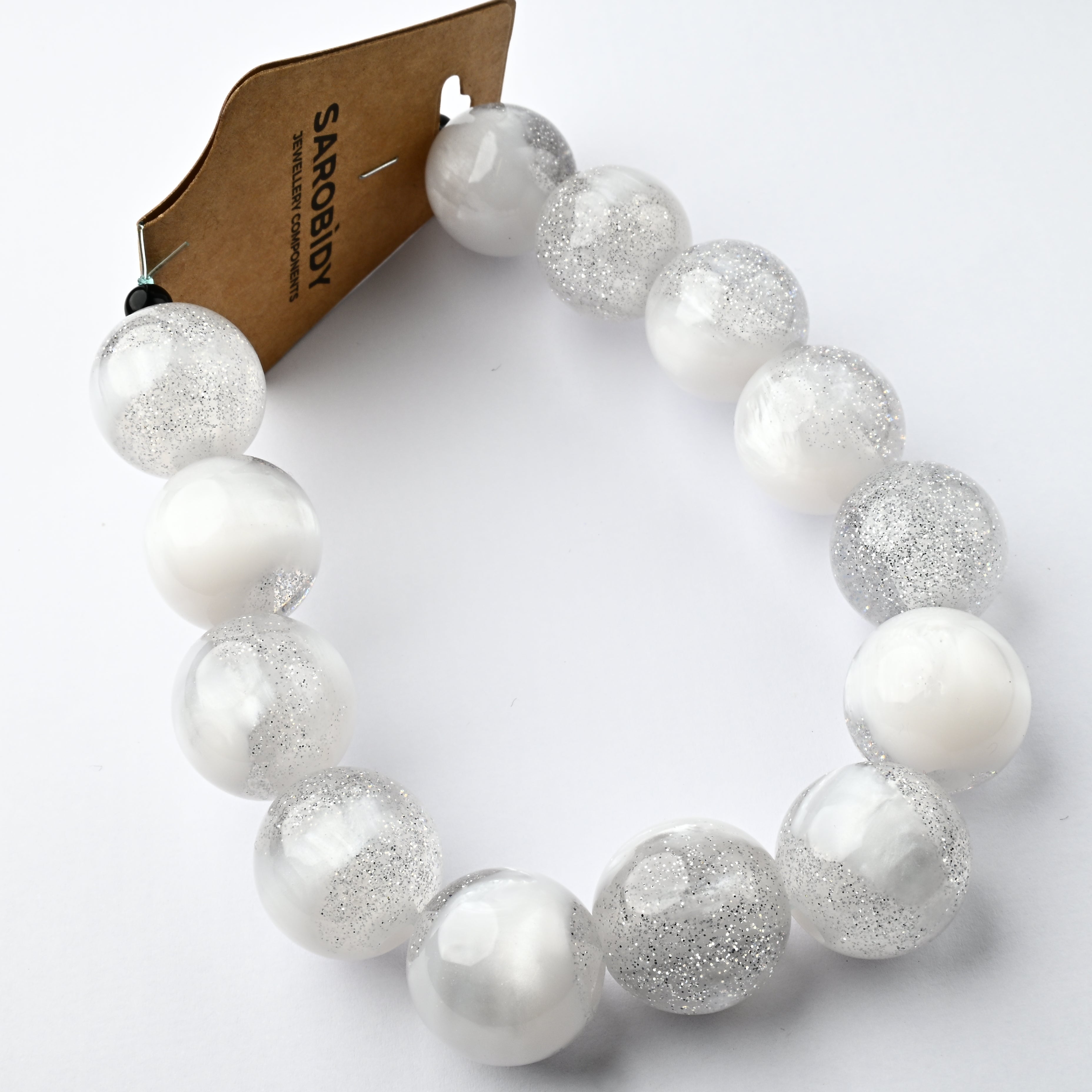 Perle in Resina Tondo Bianco Lattiginoso Glitterato 20mm
