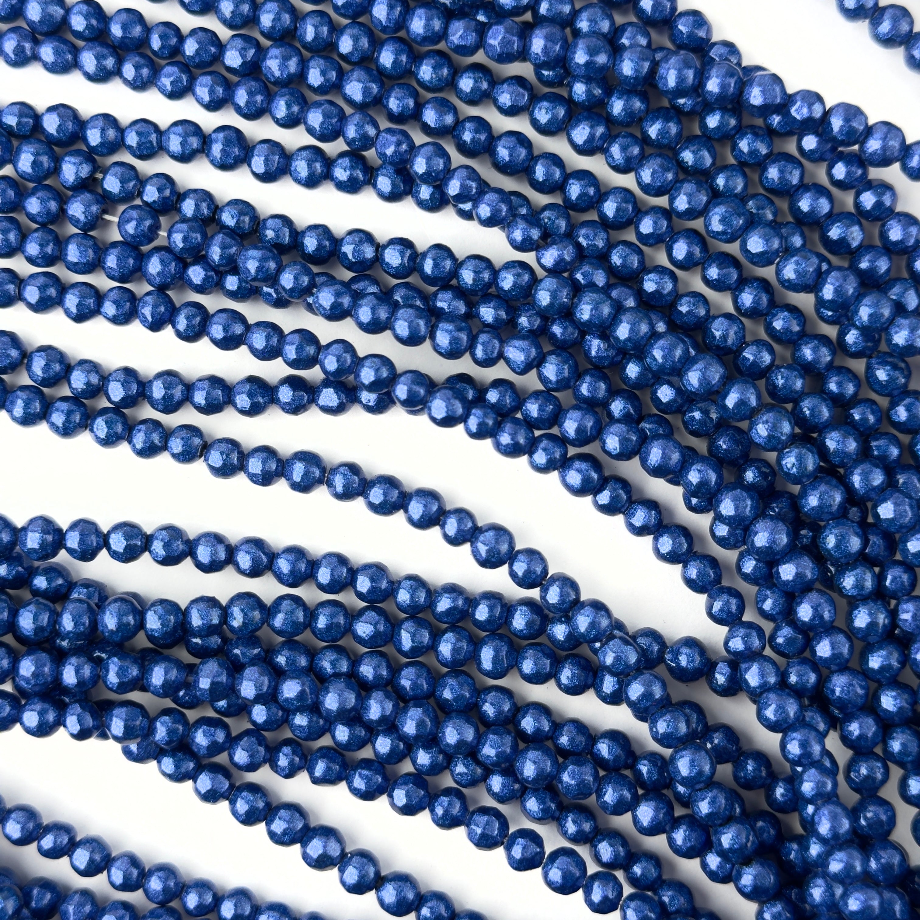 Perle Prisma Smaltate Blu Denim Tondo 4mm - Filo 40 cm