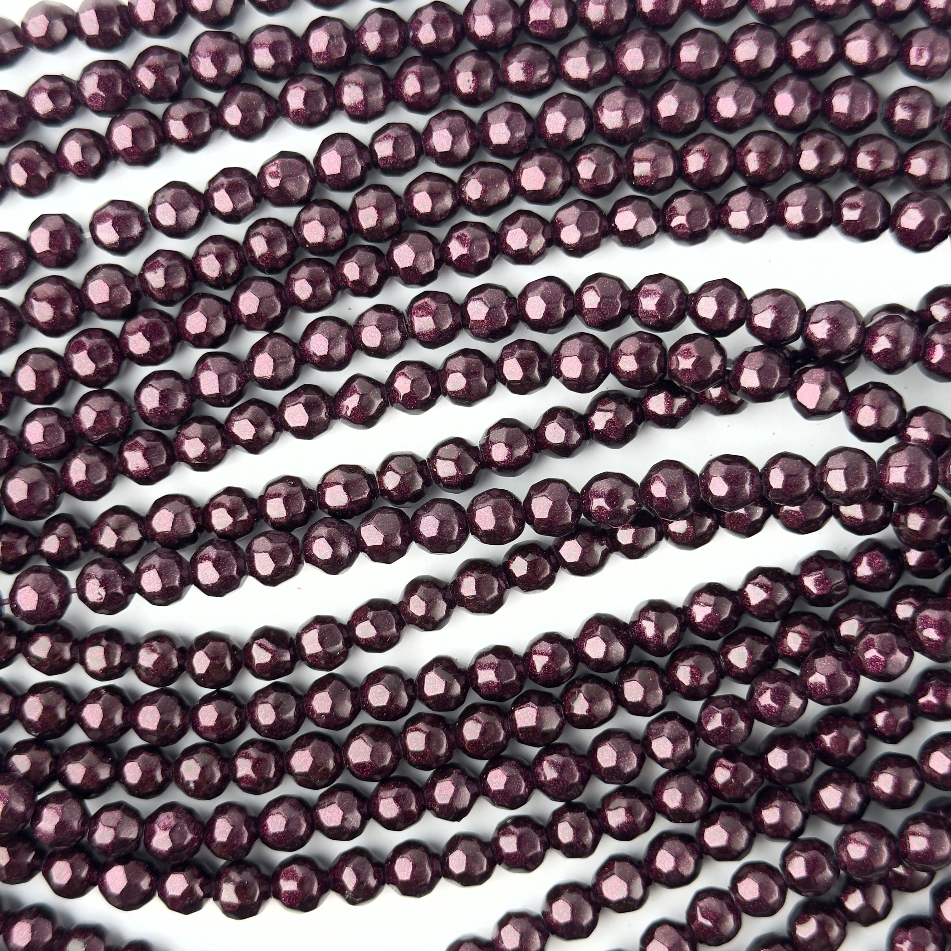 Perle Prisma Smaltate Bordeaux Tondo 6mm - Filo 40 cm