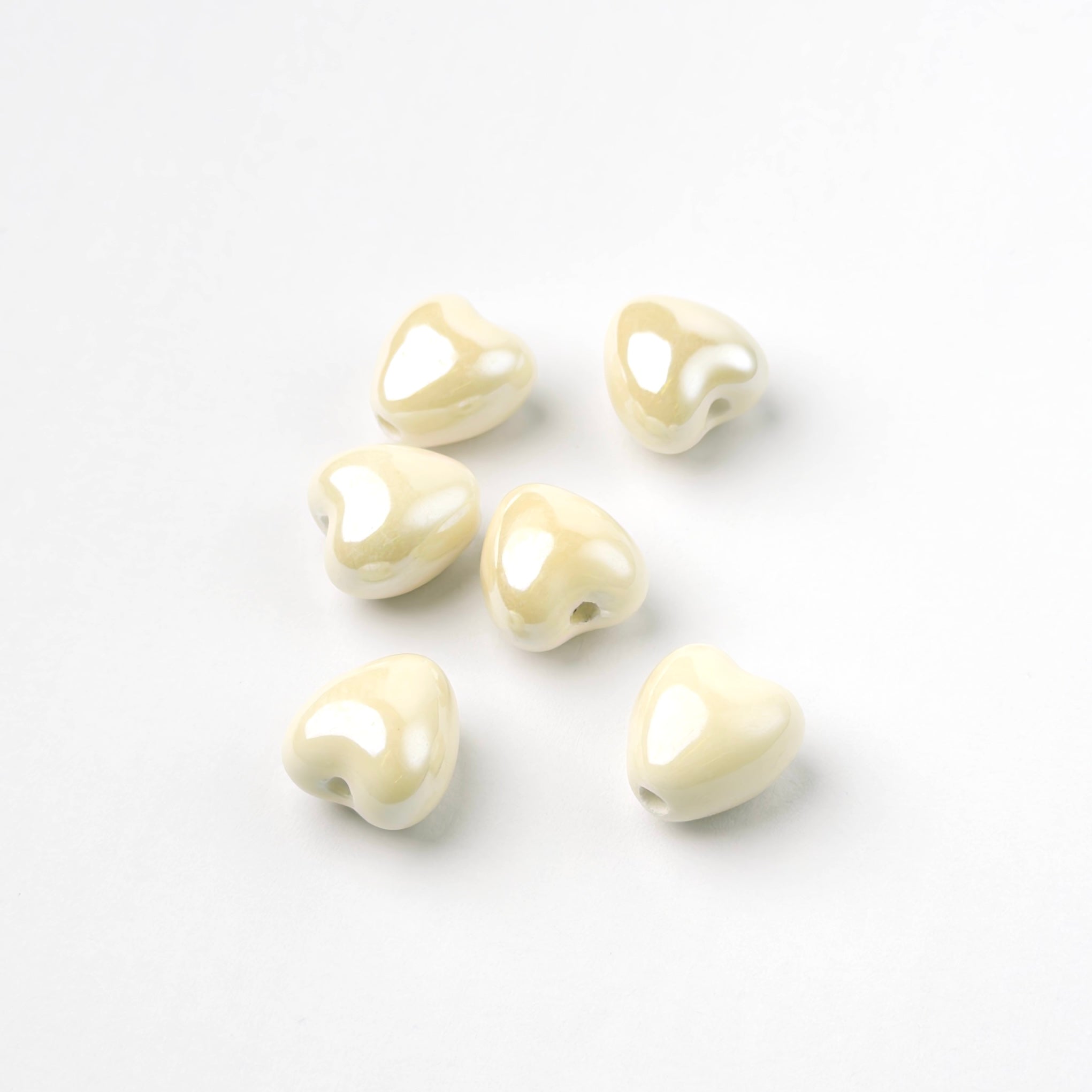 Perline in Ceramica Cuore Avorio 12mm - 6 pz